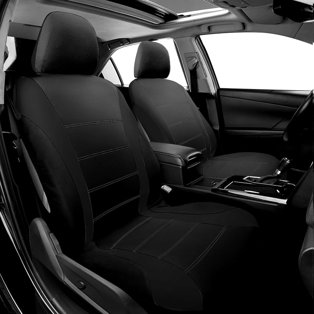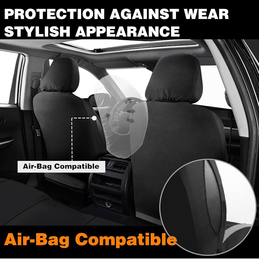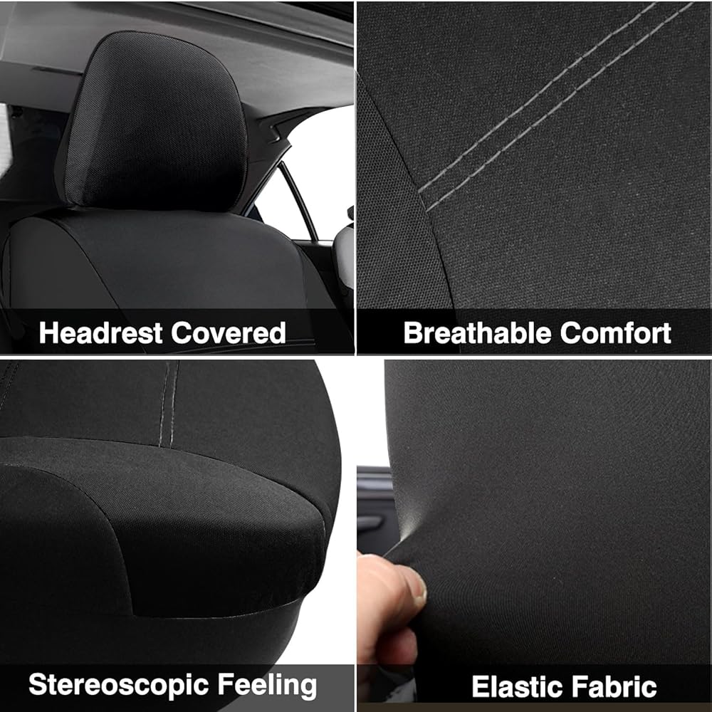 Foneso Car Seat Covers, 100% Breathable with Composite Sponge Inside, Airbag Compatible Universal Fit Accessories Auto for Cars, Trucks, Sedan, Van, SUVs (Black, Full Set)