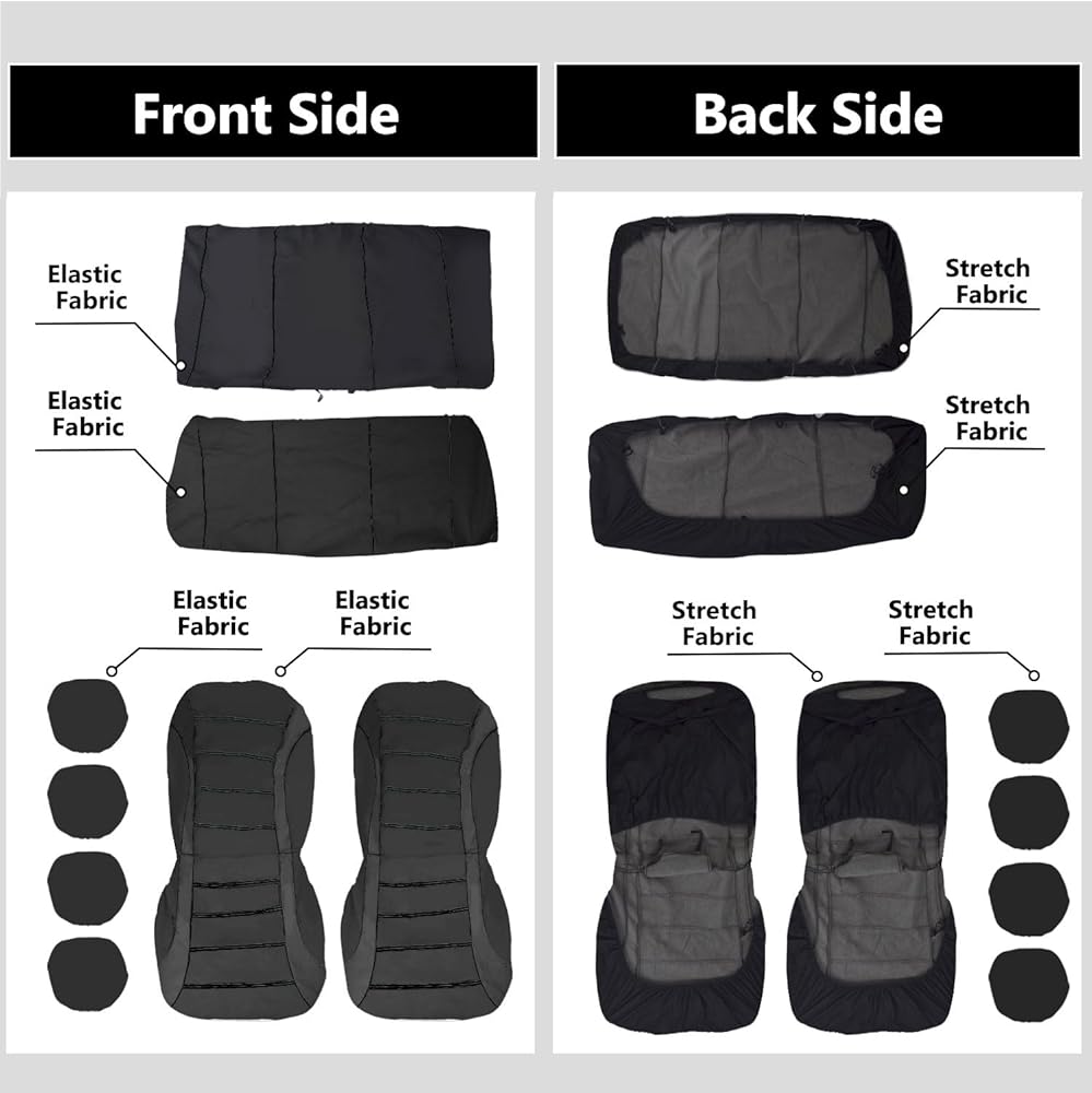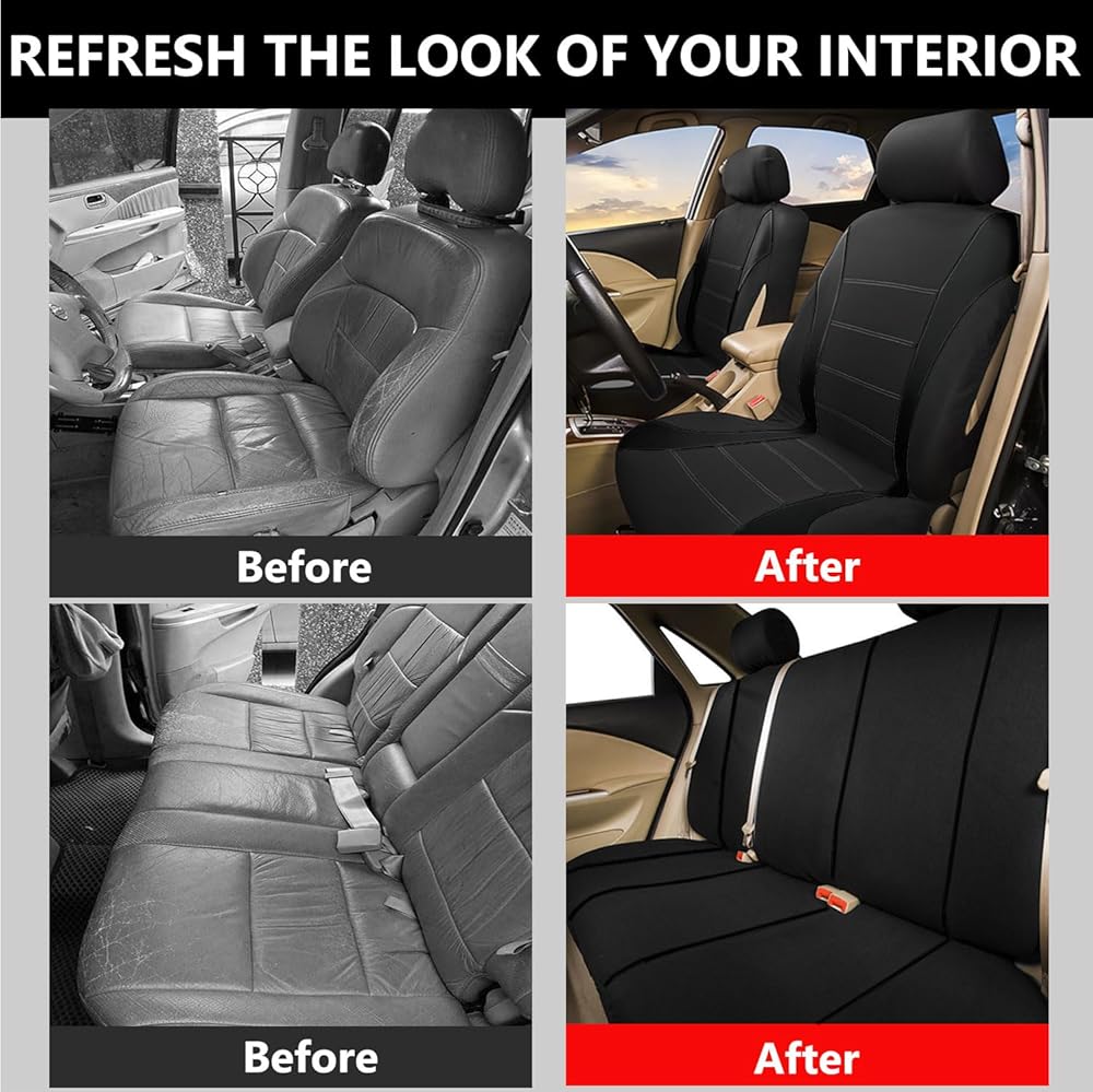 [EASY INSTALLATION/REMOVAL] Don't need to dismantle your car seats. The installation of the front seat cover is quick and easy. The rear bench cover is designed in one piece, allowing it to be spread over the rear seats and buckled onto the headrests. Follow the installation instructions, and your car seat cover will be ready to go!