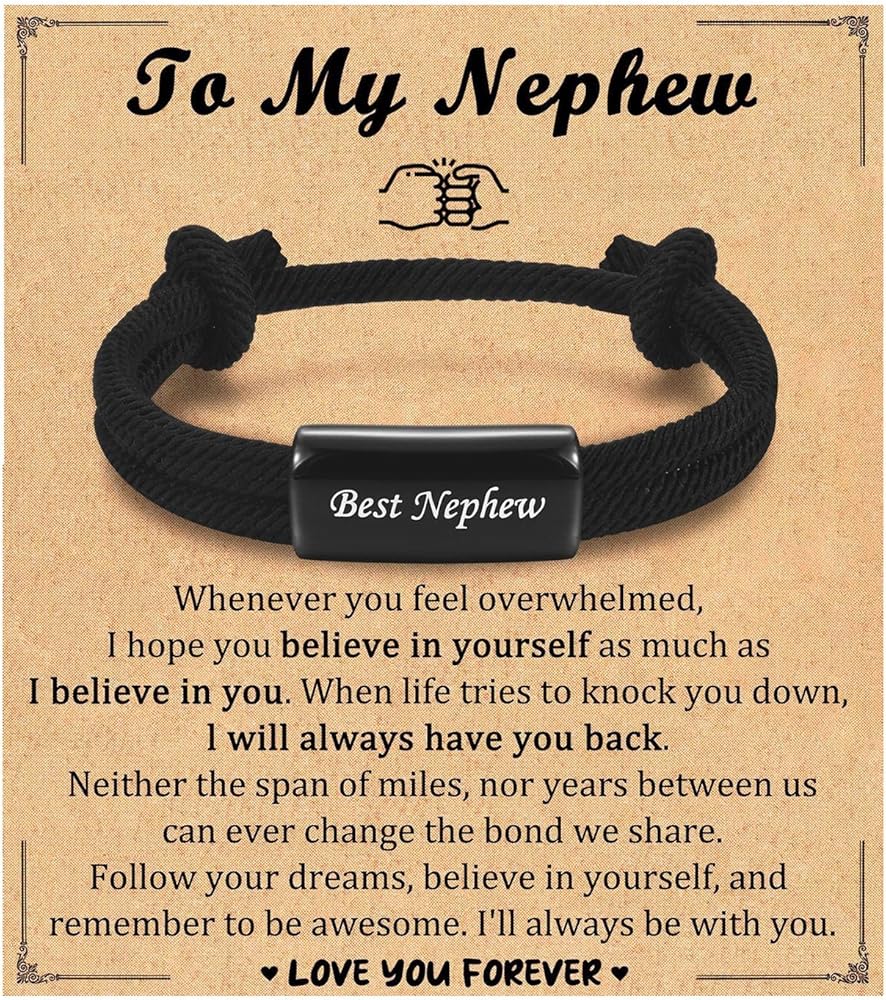 Teen Boys Gift Idea: This to my nephew bracelet came with a gift box, a love message card and a blank greeting card, which will be cool birthday, Christmas stocking stuffers, Valentines Day, Easter basket stuffers,back to school, graduation gifts for nephew.