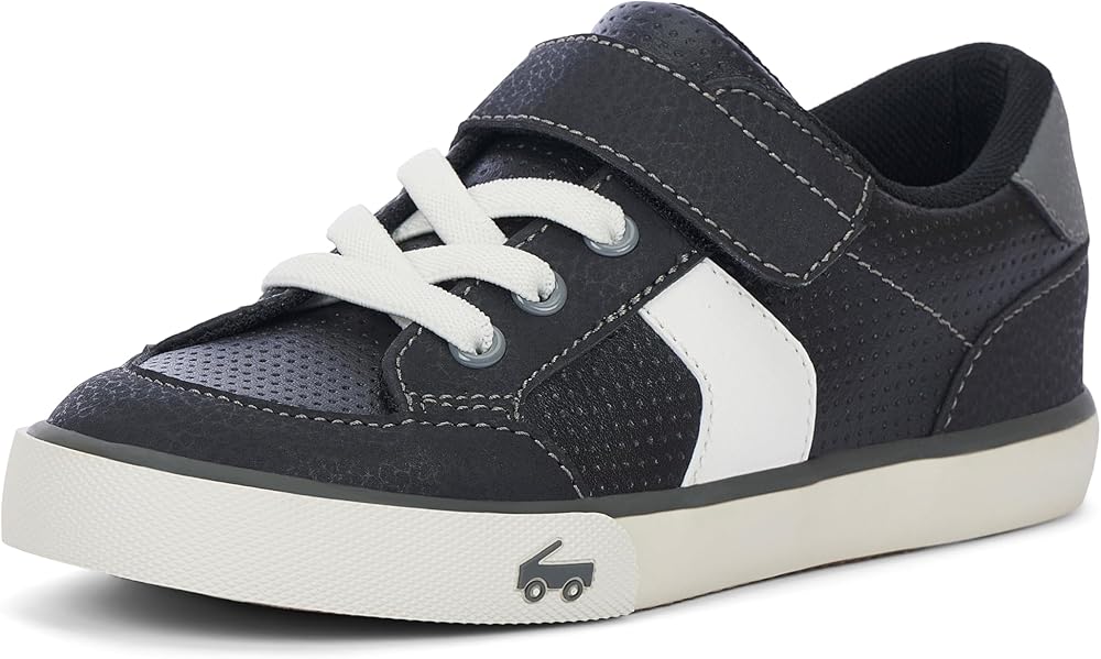 Hook-and-loop strap and faux elastic laces allow for secure fit and custom adjustability while classic SKR fit gives feet room to move and grow