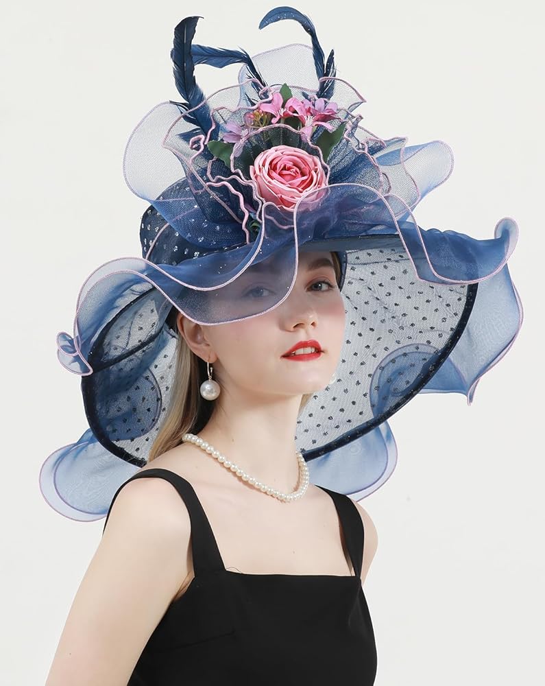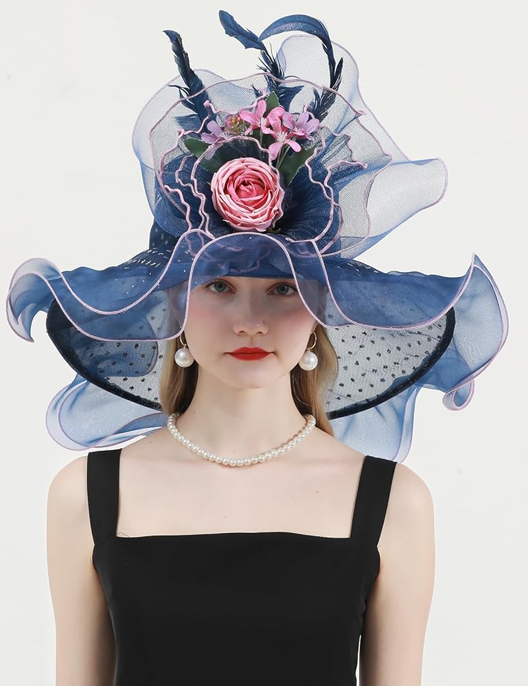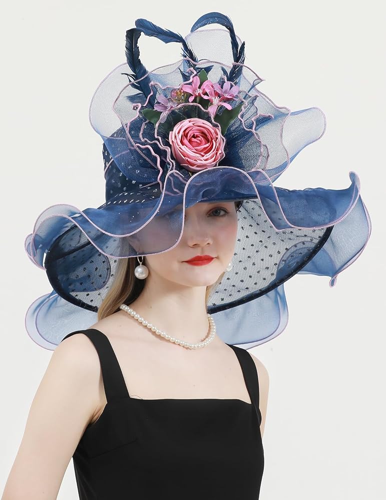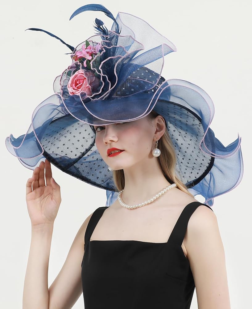 Material & Size --- Made in Organza, UV 50+. Foldable elegant derby hat allows you carry it wherever you want to, quite soft and comfortable. One size: Hat circumference: 21.26~22.83 inch / 54-58cm, wide brim that is 5.1 inchs/13cm all the way around. Draformal occasions Standing out from the crowdgirlsou
