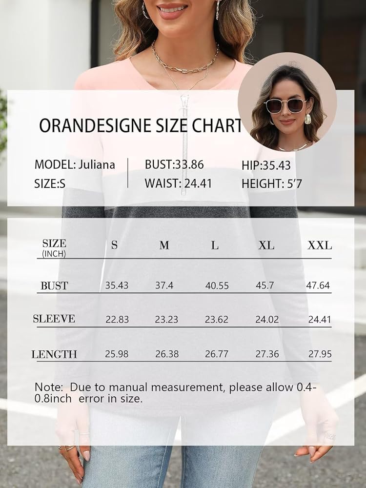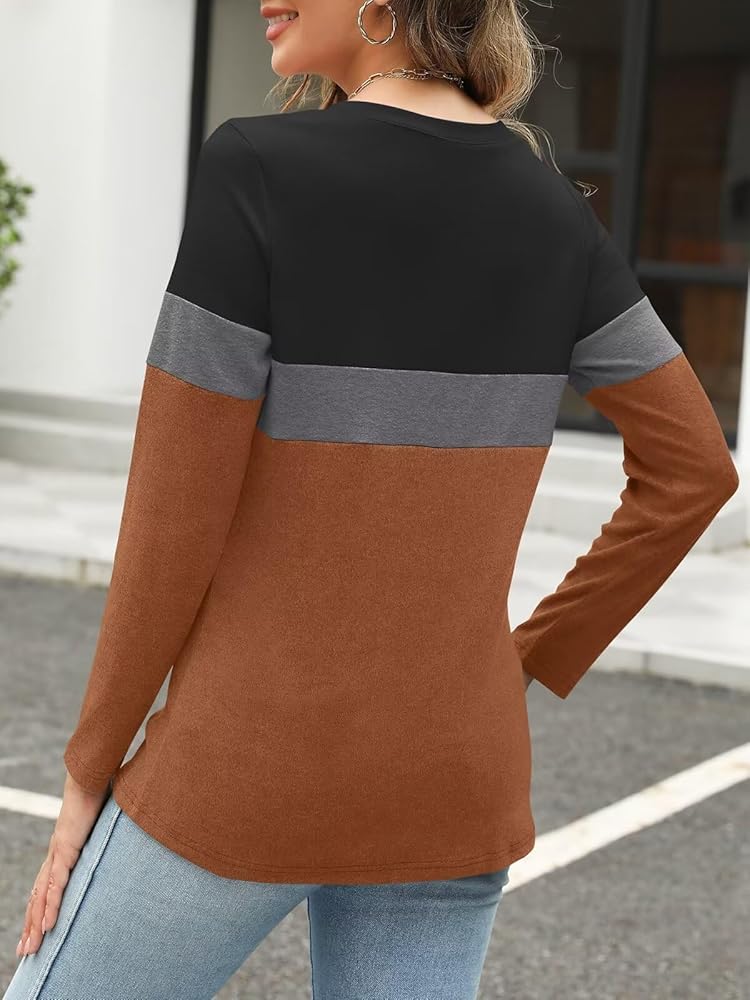 Occasions:long sleeve tee shirts for women.womens casual tops.Whether it's work,party,going out,travel,sports,daily wear,shopping,dating,this women's color block t-shirts will be suitable for wearing. The design of zipper can make clothes look more beautiful and elegant. In some formal occasions, color block clothes will appear more dignified and appropriate.