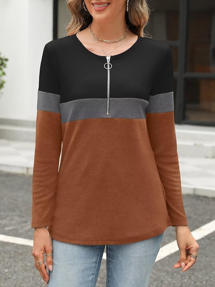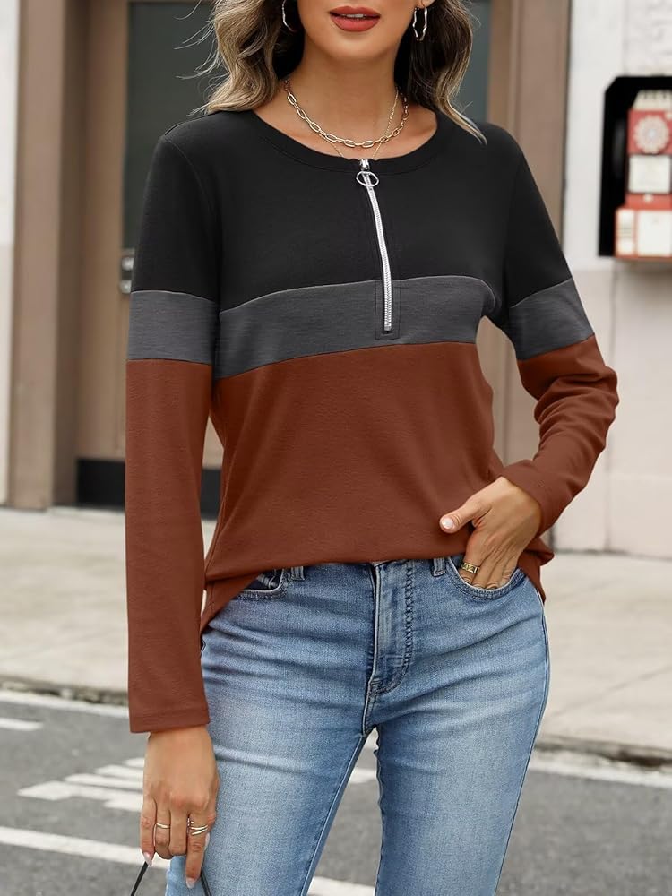 Match:fall shirts for women,womens tops dressy casual.Easy to pair with your pants,jeans,skinny leggings for a trendy look,Innovative color block long sleeves with a zipper design let you lead the fashion trend.