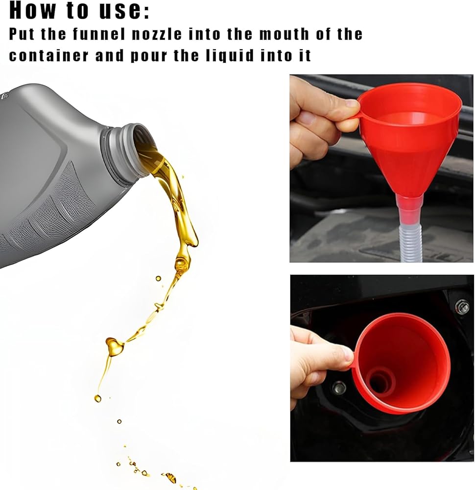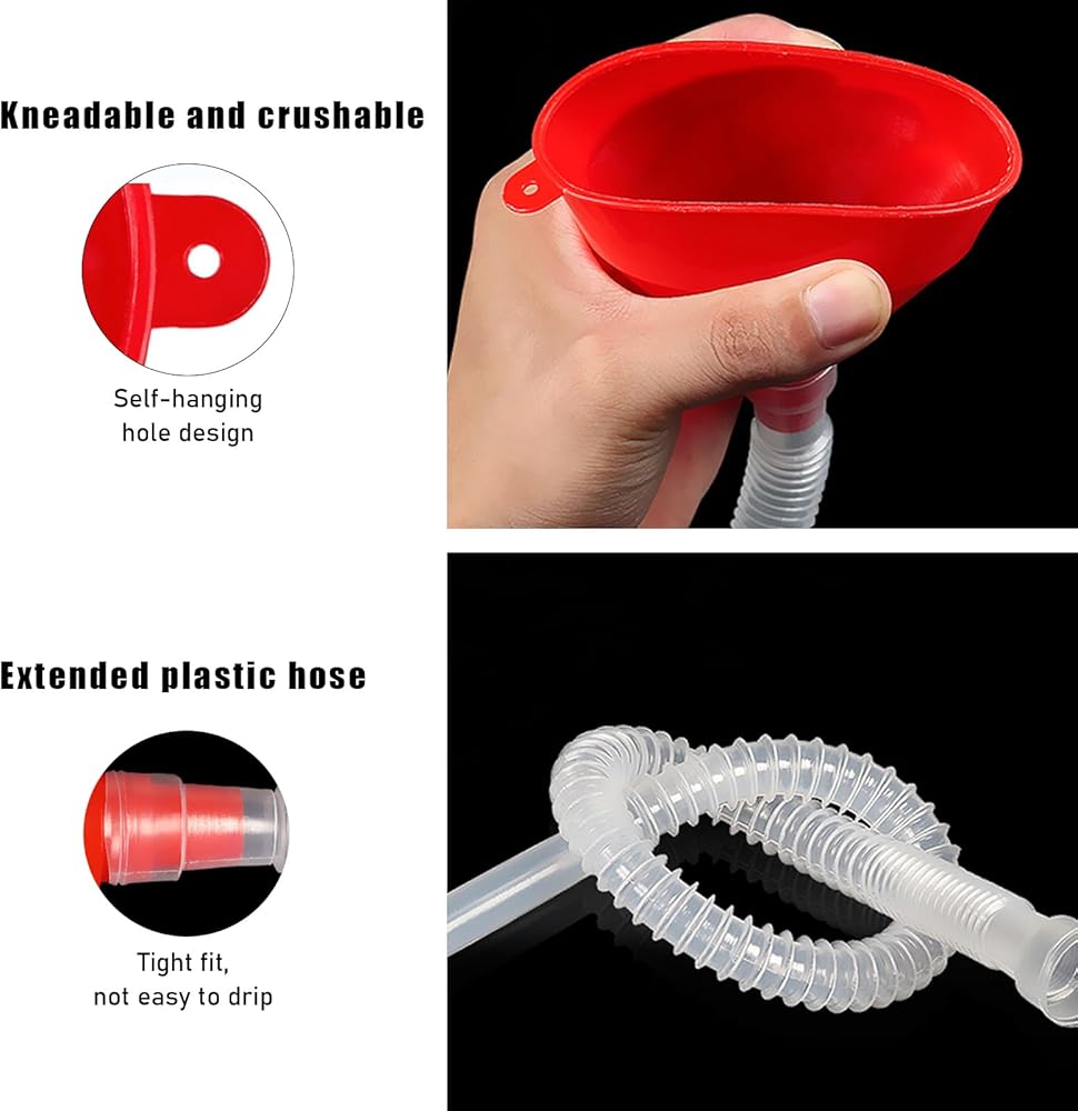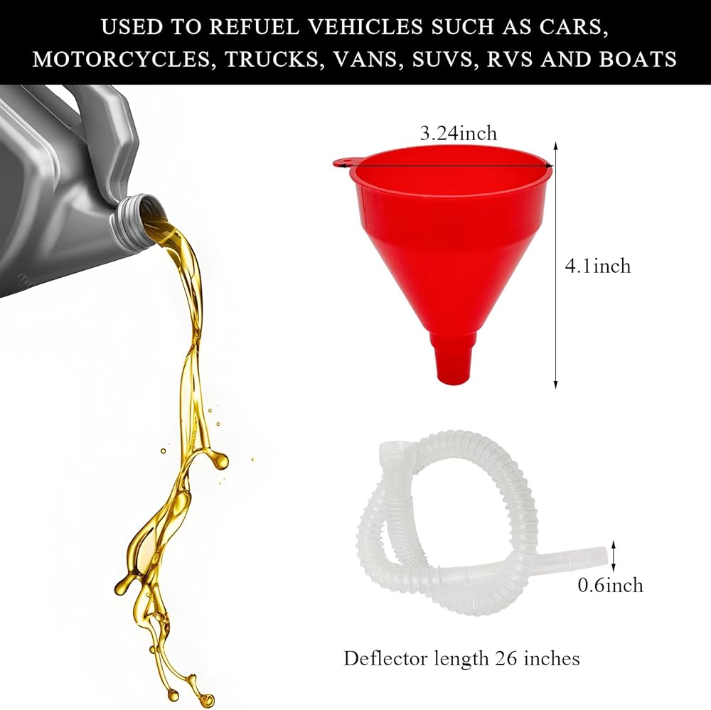 【Practical Function】: It can effectively prevent sand, dust, grit and other debris from entering the car fuel, ensuring its purity. The 3.24-inch wide funnel can quickly fill with fuel, the hose is soft and elastic which can be bent to use. With it, make you replenish your car's gasoline easily.