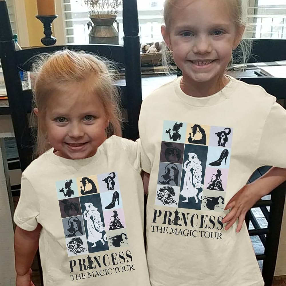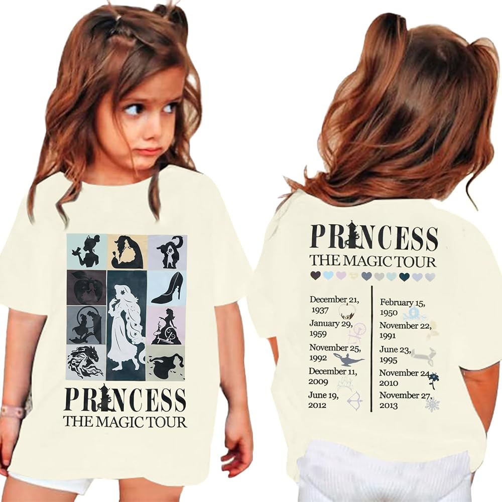 FEATURES: This double side magic shirts for toddler girl features a fun princess group characters graphic on the front ,the time-ordered letter printed on the back.Multiple of letter prints and graphic makes you look interesting and cute.