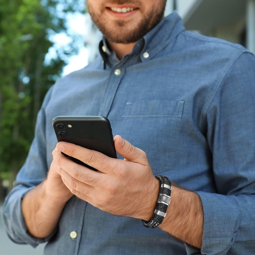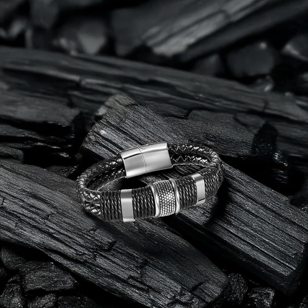 【Premium Material】 Men's bracelets are made only from finely textured, soft-touch leather, as well as high-tensile stainless steel alloys with multiple polishing processes.