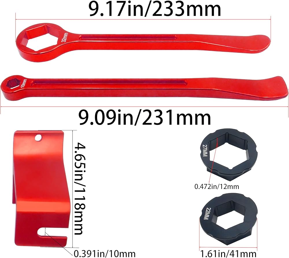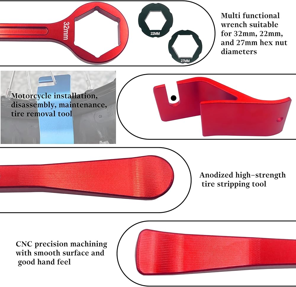 10mm/0.39''13mm/0.51''22mm/0.87''27mm/1.06''32mm/1.26''Tire Iron Lever Tool Spoon Motorcycle Tire Change Kit Wrench Set Bead Buddy Kit Tire Repair Tool for Bike EXC SX XC EXCF Dirt Pit Bike (Red)