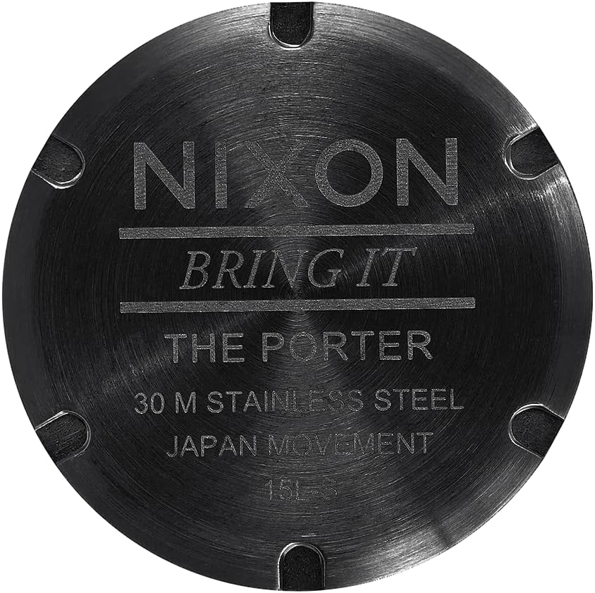 PORTER, ALL BLACK/GOLD. A forward-thinking but traditional Nixon design, the all gold band and black/gold watch face Porter is bold and vibrant with 3-hand movement and custom stainless steel.