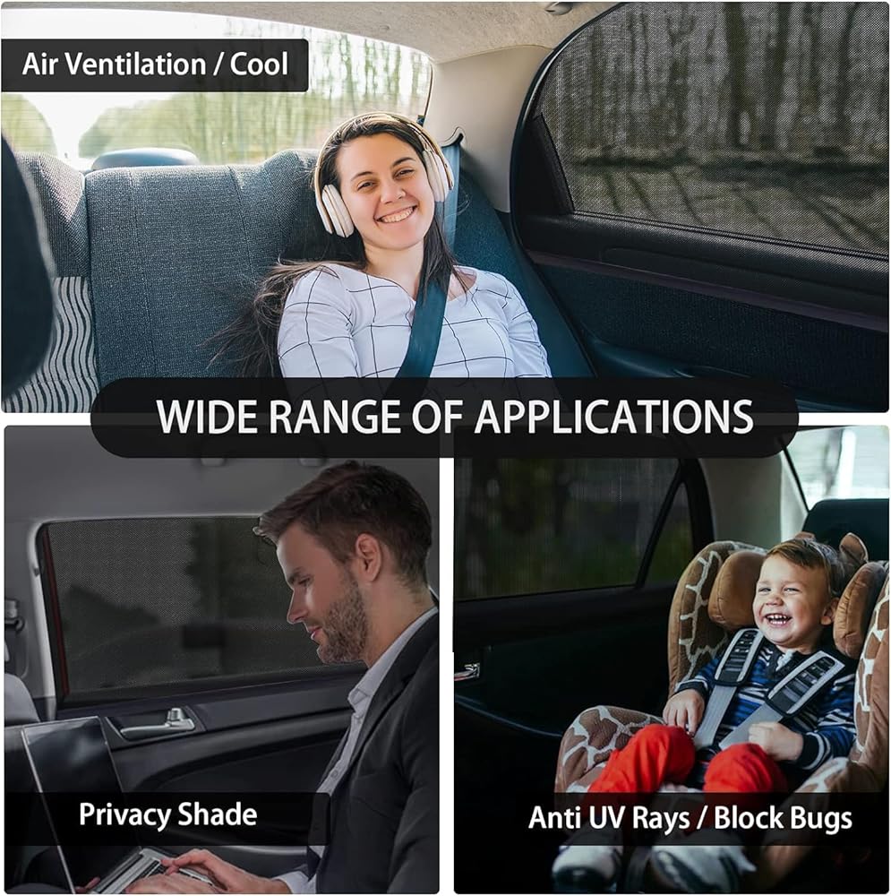 CAR CAMPING ESSENTIAL:Prevent flys and other objects from entering the car. Can reduce sun heat keep cooler temperature in summer days.Our shade is made of high density mesh, please don't drive with it on