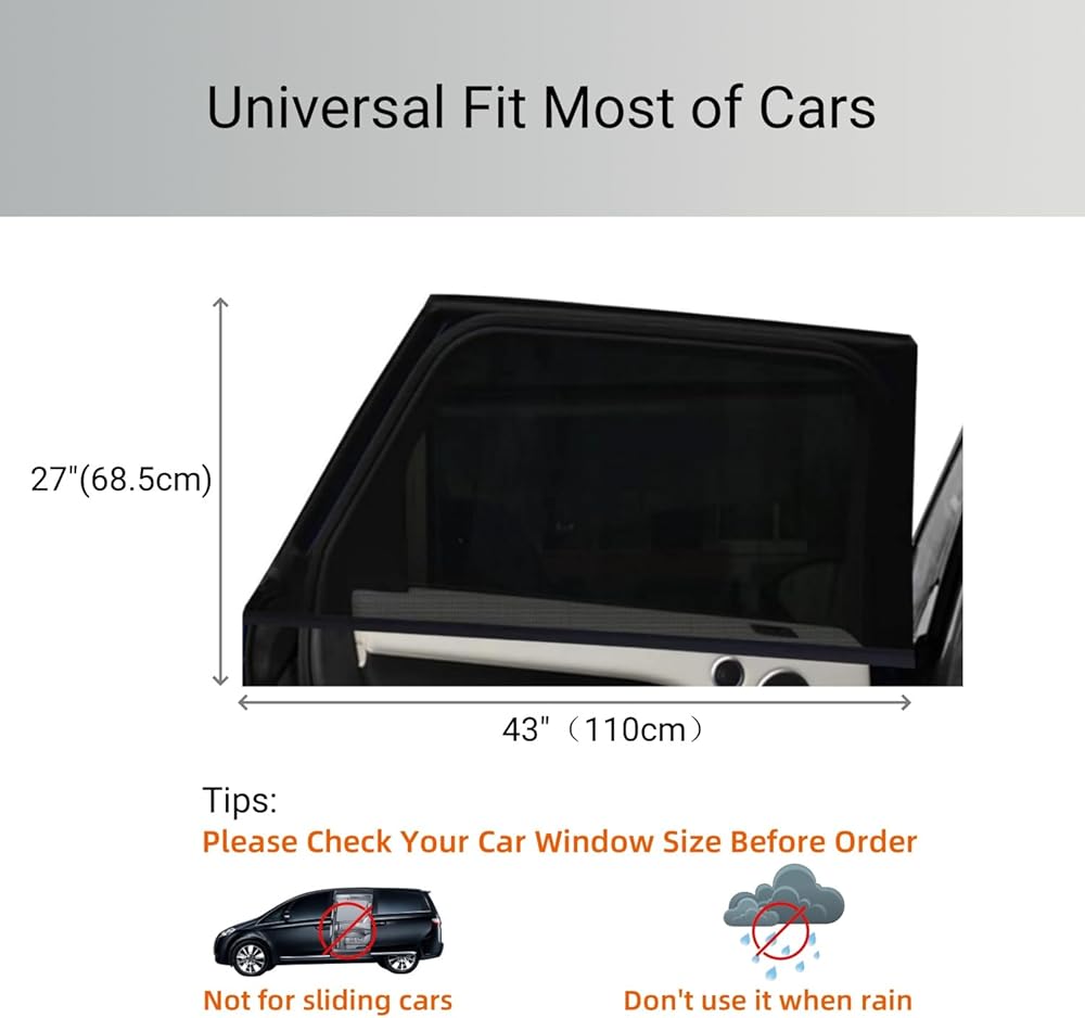 2Pack Car Window Shades Mesh Screen 27"x43", Universal Fit Most of Cars, Large SUV, Pickup, Sunshade for Car Camping UV Protection Breathable Mesh Baby Side Window Covers