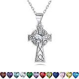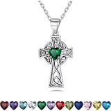 -May-Created Green Emerald Birthstone Necklaces- Green Emerald Gemstone Necklaces embellished in the high polished vintage 925 sterling silver celtic cross, So flattering and sparkling to catch your audience! There are 12 different colors of Gemstones, corresponding to the birthstone of each month. You can choose the color according to the birth month.