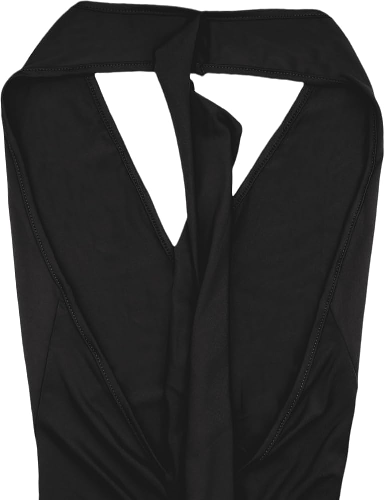 Type: Backless draped maxi dress, sleeveless, halter neck, open back, solid color, floor length, draped back, low cut, slim fit