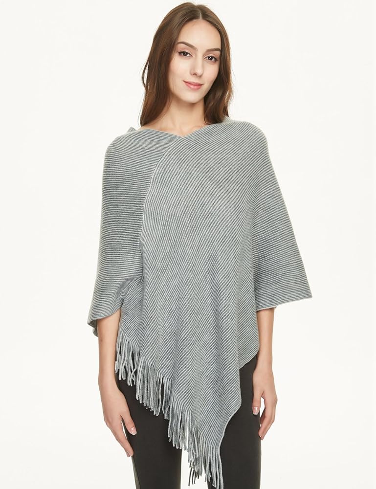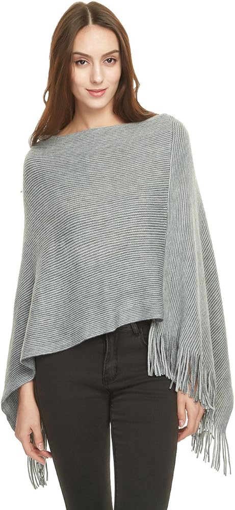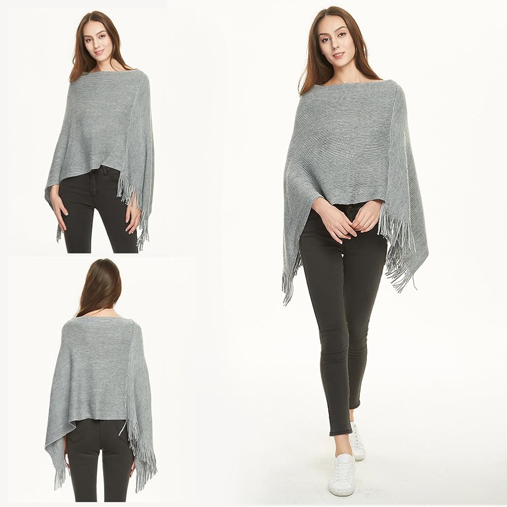 LIGHTWEIGHT & WARM PONCHO: The soft poncho sweater is made of 100% acrylic that you will feel it like cashmere sweaters. The asymmetrical fringed trims and versatile neckline make it the perfect outer cover to pull off a stylish look.