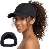 【For Your Favorite Hairstyle】- This pony tail hat features a scrunchie-style opening at the back. The opening is wide enough for a high ponytail, a top knot, or a messy bun. The black baseball hat is the perfect apparel for an on-the-go casual look to keep your hair up.