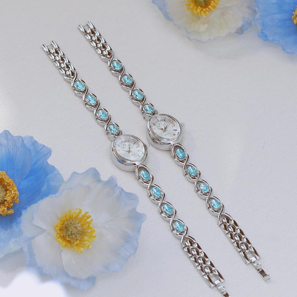 Watches for women: This oval Vintage women watch with sparkling diamond accentuate dial .stainless steel case and Strap adorned with Colorful crystal stones symbolizing luck fully watch presents a luxurious and noble atmosphere. making it a unique and fashionable choice for women.