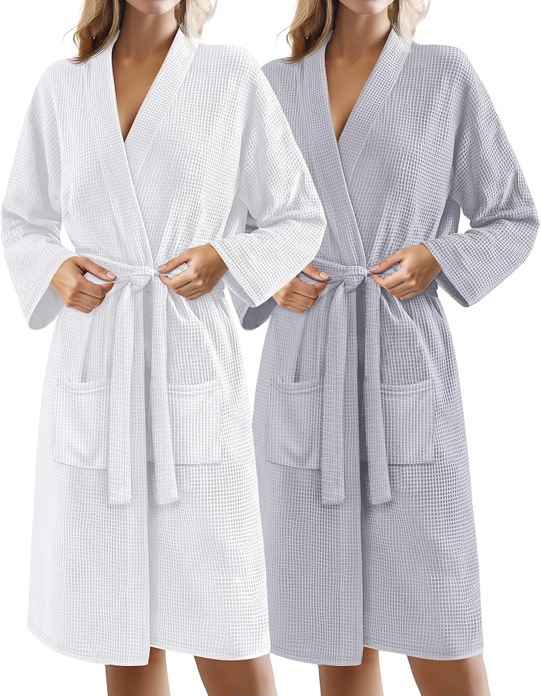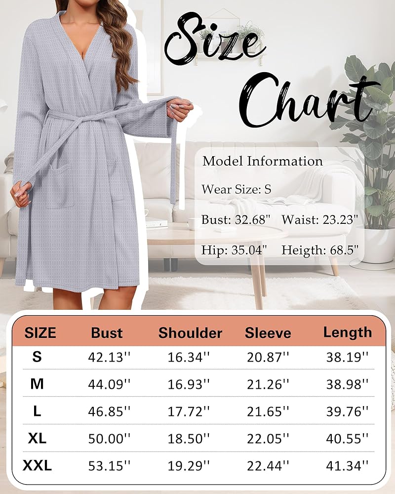 Multi-size Selection: our waffle knit bathrobes have size from S to XXL to fit most figure, pls check the Ficerd size chart to help find a more accurate size; The style is unisex, so it can also be worn by men
