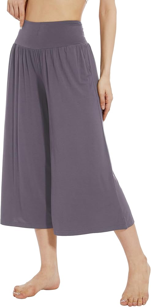 【WIDE LEG DESIGN】Two deep side pockets are good to hold your phone or other essentials when you are running or walking. Wide leg design allows you to move freely without feeling constricted. High elastic waistband can hide your belly, and give you added comfort.