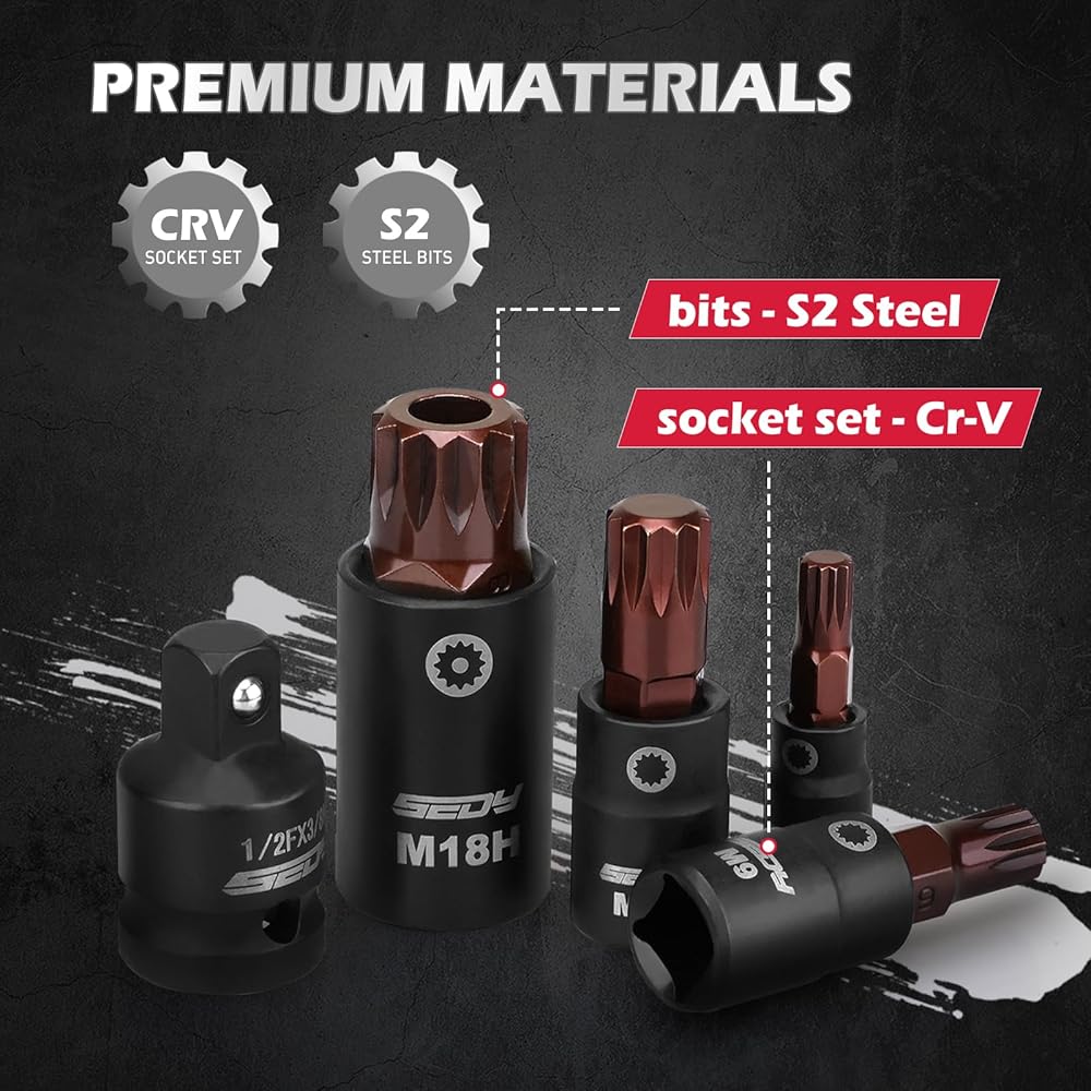 DURABLE DESIGN - Drop-forged and heat-treated S2 steel bits with hardened Cr-V steel sockets, ensuring long-lasting performance. Ideal for high-torque applications in garages, workshops, and repair tasks.