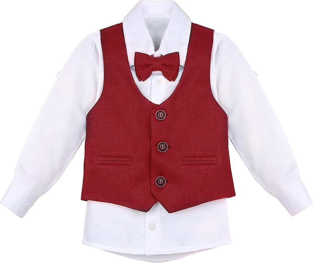 Classic Vest Suit – These suits for boys come with everything they'll need to look smooth and stylish at parties or events including a formal lined vest, pressed pants, collared white dress shirt, and matching bowtie.