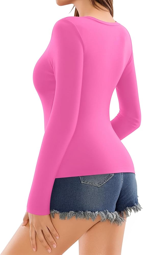 FIT Versatile Style: T Shirts for women going out will be perfect matched with many clothes. You can wear something fancy or just a pair of jeans, pants,skirts, shorts,heels, boots, jackets or anyway you want.V neck long sleeve women t shirt tops are super cute or sexy and it's nice a fitted to your body