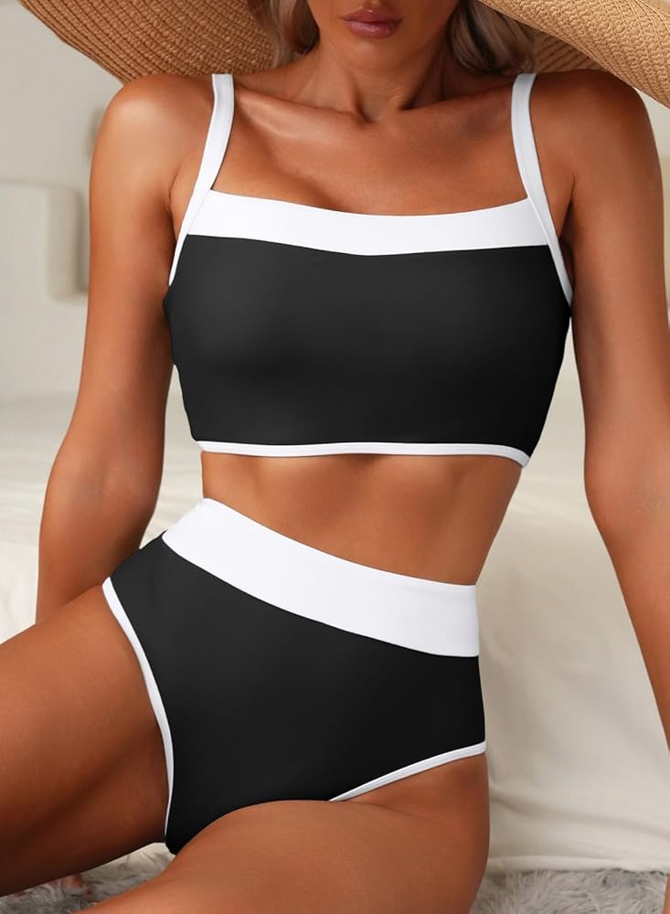This elegant swimsuits features a flattering U-neckline that enhances your look, wire-free for ultimate comfort, removable pads for adjustable support, adjustable straps for a perfect fit, and a high-waisted silhouette that slims and shapes your figure