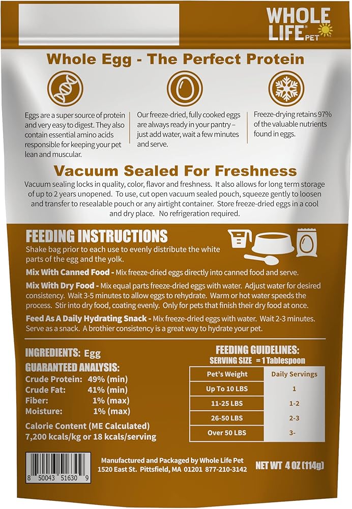 Whole Life Pet Freeze Dried Diced Eggs for Dogs and Cats. Fully Cooked Just Add Water. Healthy Skin, Strong Bones, Picky Eaters. Human Grade Quality
