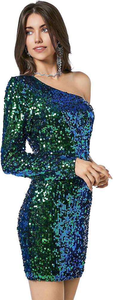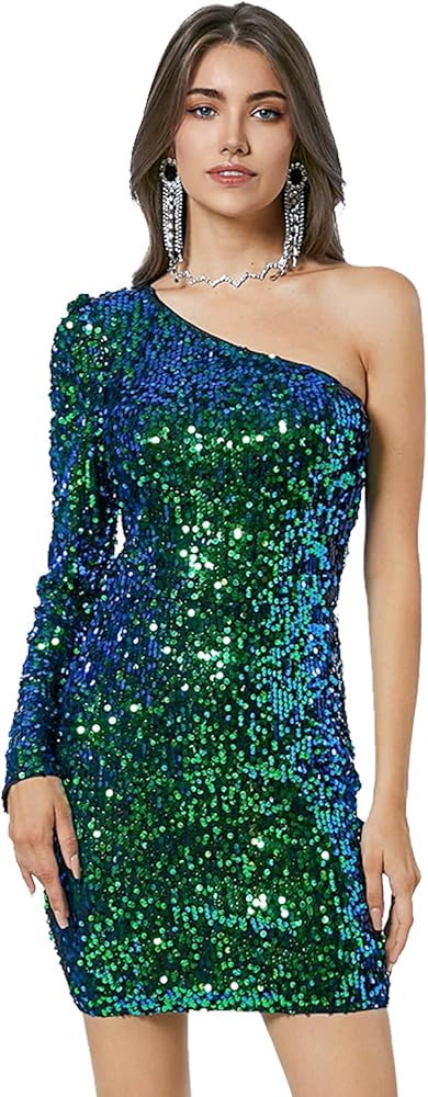 Features : Sequined homecoming dress for teens , unique one shoulder long sleeve design, make you more attractive, we designed zipper on the side, let you take it off easily, full body sequins and slim lining, make you shine at night and stand out in the crowd like a star.
