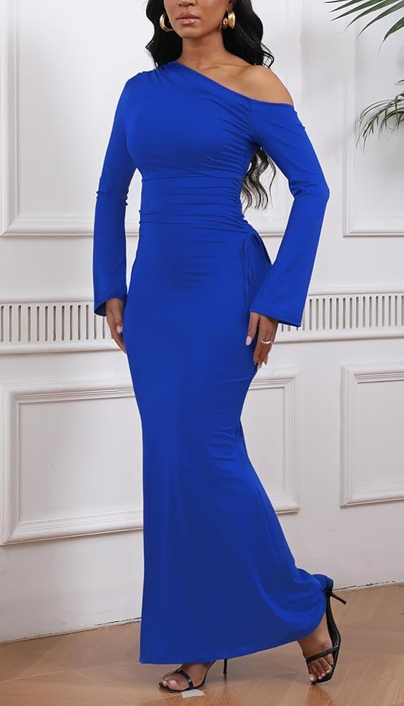 【Design】: This one-shoulder pleated evening dress highlights women's S-curves while being comfortable and making you look more attractive!