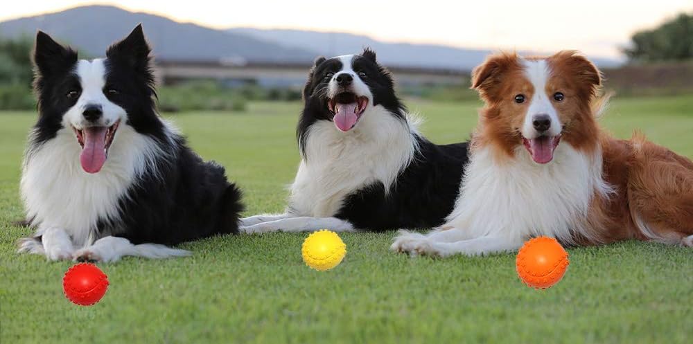 ★ألعاب كروية مطاطية لمضغ الكلاب وتصدر أصواتًا للجرو والحيوانات الأليفة الصغيرة والمتوسطة والكلاب والقطط، حزمة من 3 ★