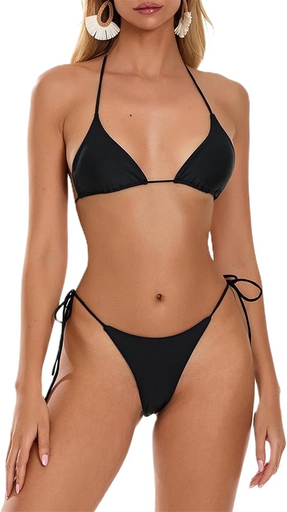 Features: Women sexy 2 pieces bikini sets, halter backless bra top, spaghetti strap bra crop top, solid and floral print, drawstring bathing swimwear, g-thong tie side bikini bottom, triangle tie up sexy thong,brazilian bikini sets for women, tie dye bikini sets, high cut 2 piece string bikini set, high cut brazilian thong bikini, tie dye bikini.