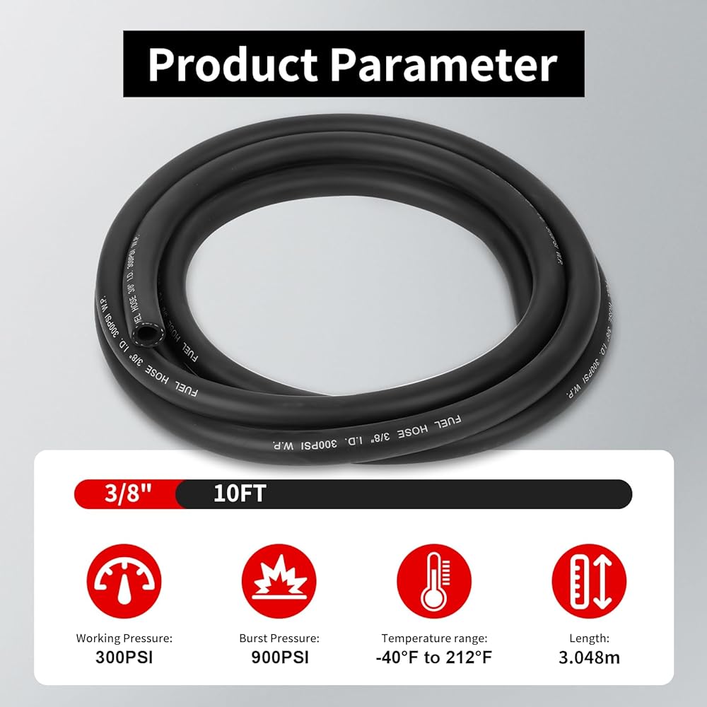 Wide Application:Perfect for fuel lines on boats, lawnmowers, cars and more, this rubber fuel line ensures smooth fuel delivery.