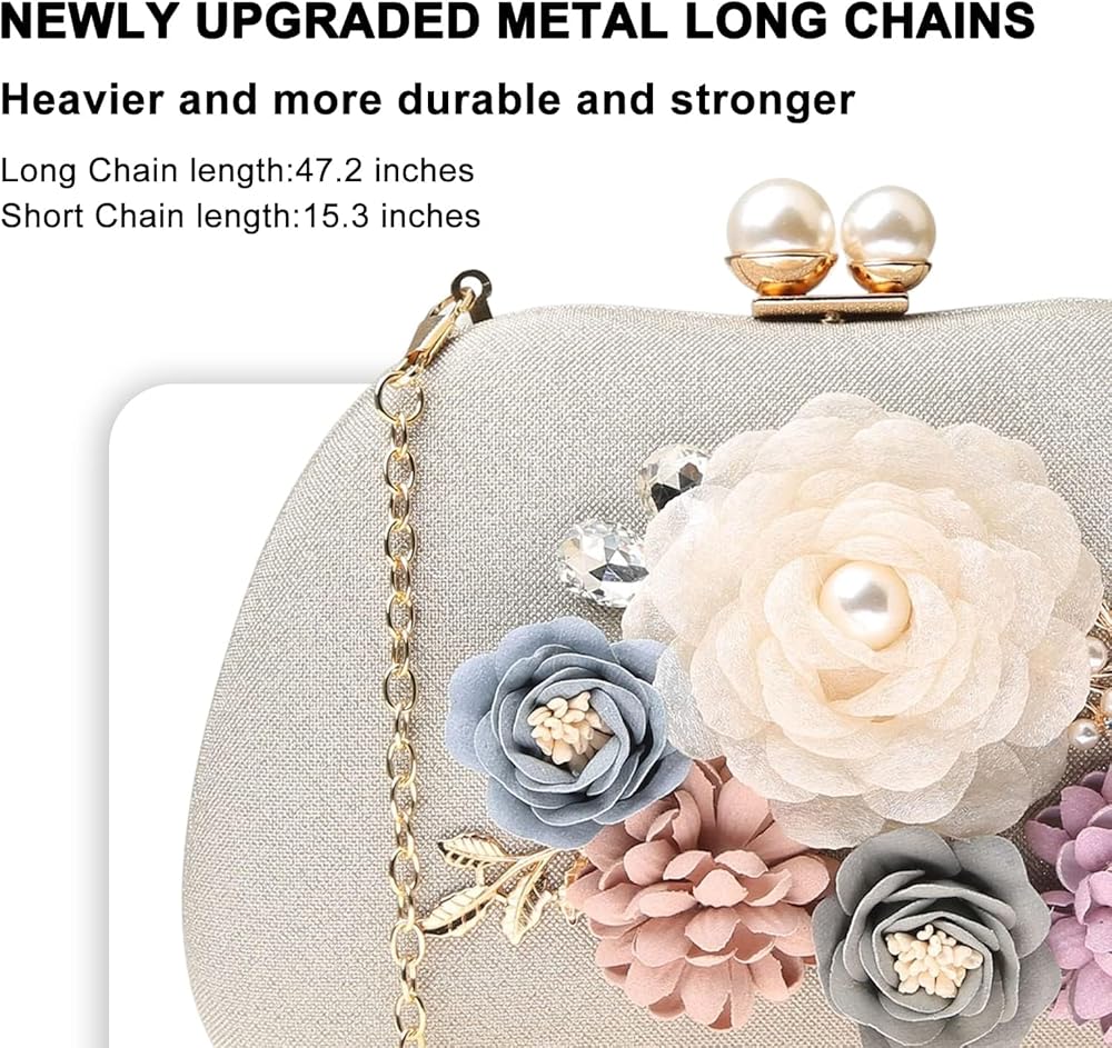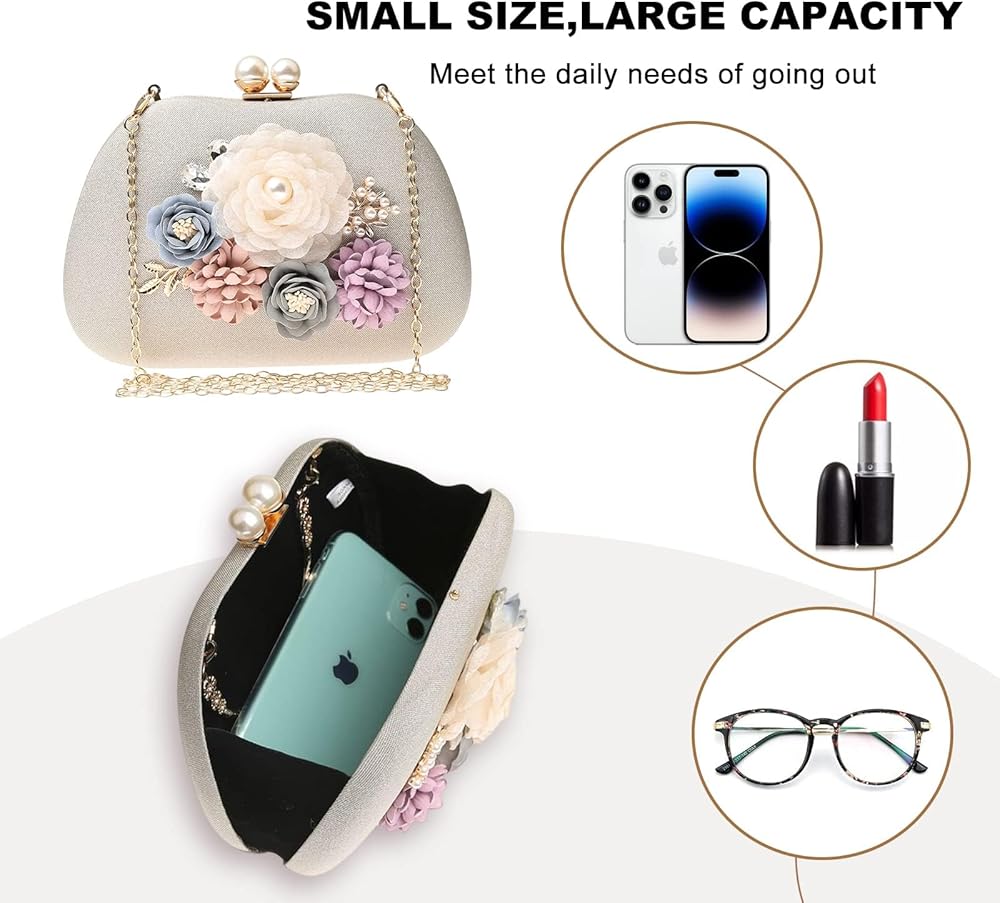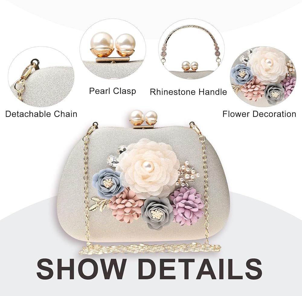 Occasions: Ladies floral purses are suit for various occasions, doubles as an elegant clutch bag, perfect match for weddings, night club, banquet, birthday parties, weekend, dating, shopping and any special occasions