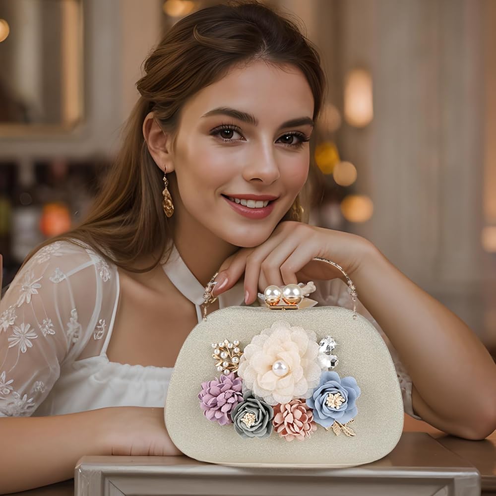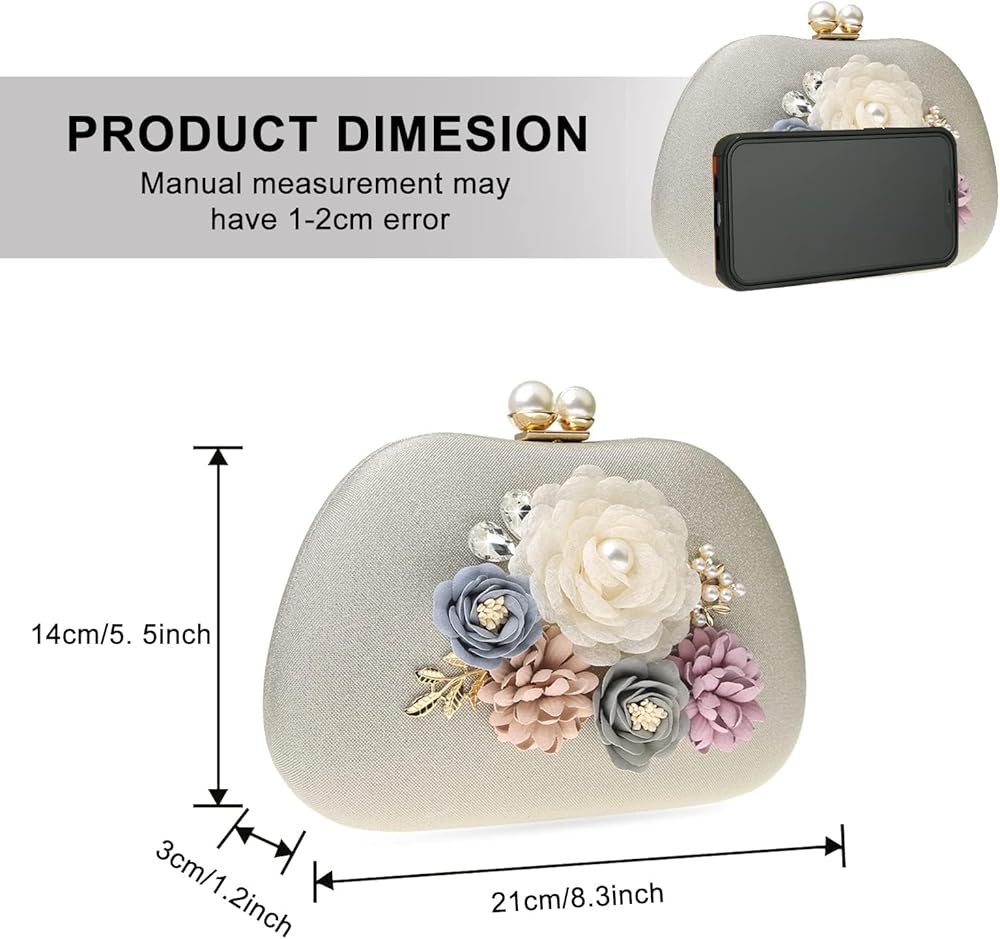 Beautiful Design: This Evening handbags for women Adorned with lifelike flowers, this clutch featuring a delicate pearl clasp could bringing nobility to you, show your femininity in a crowd
