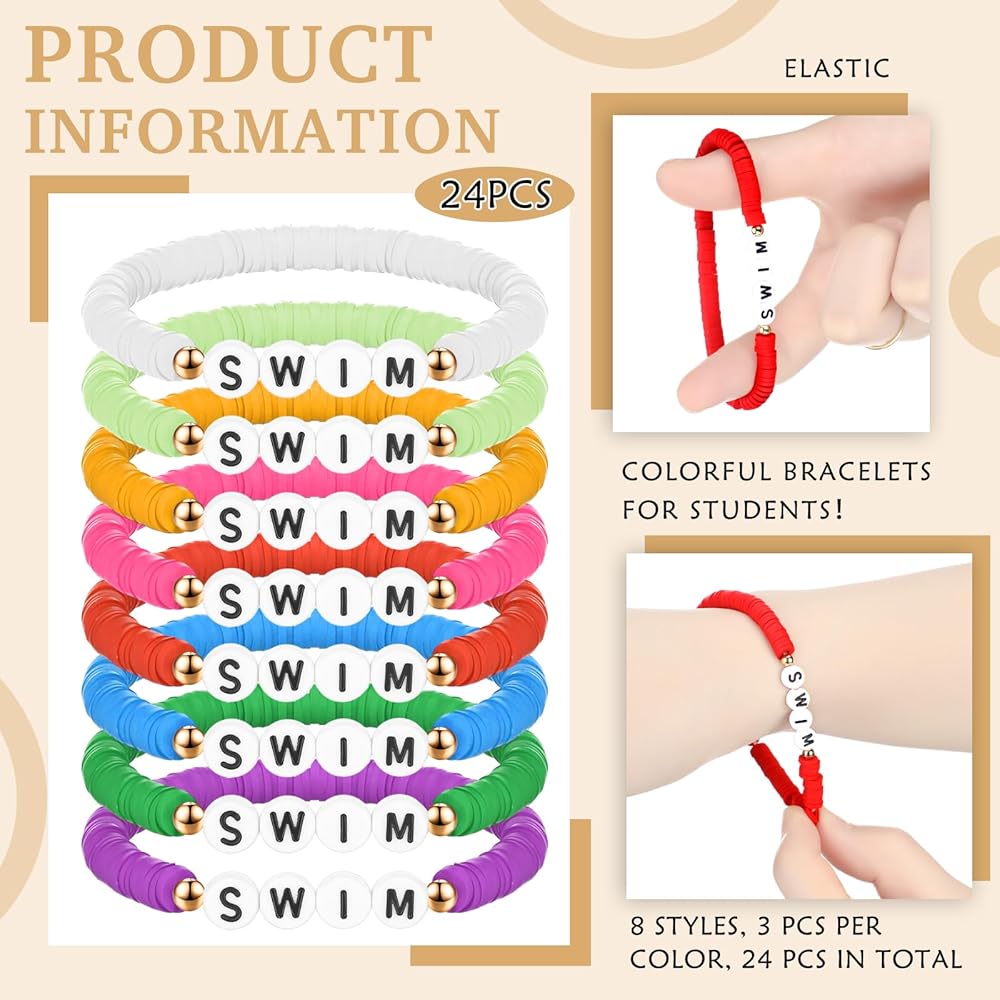 Each pack contains 24 beaded swim bracelets, these bulk bracelets are suitable for any social event involving swimming, for every swimmer in the team, for athletes to give away their own pieces, adding a touch of camaraderie