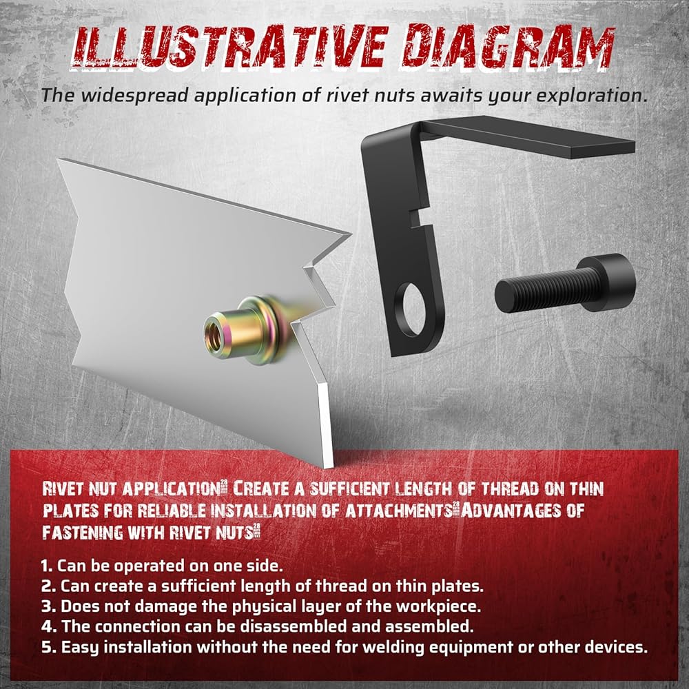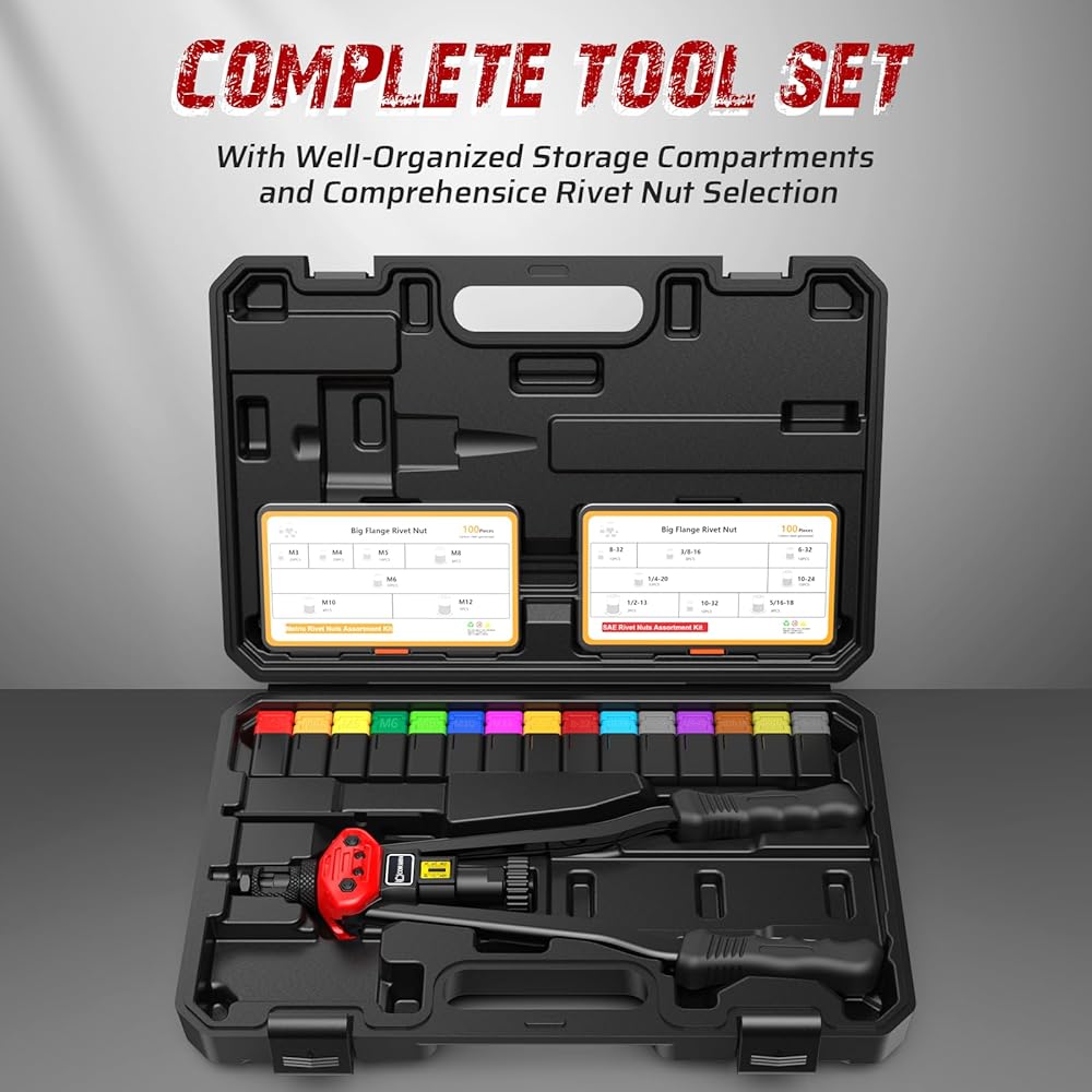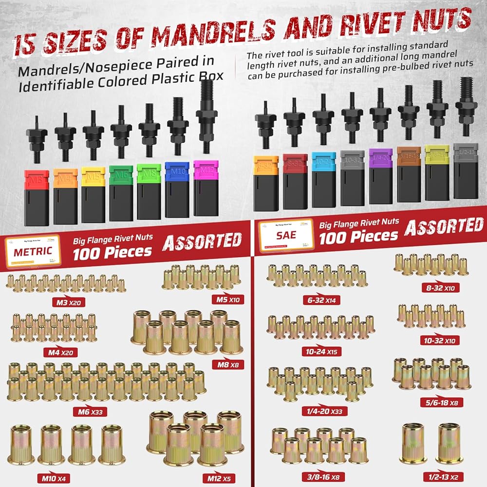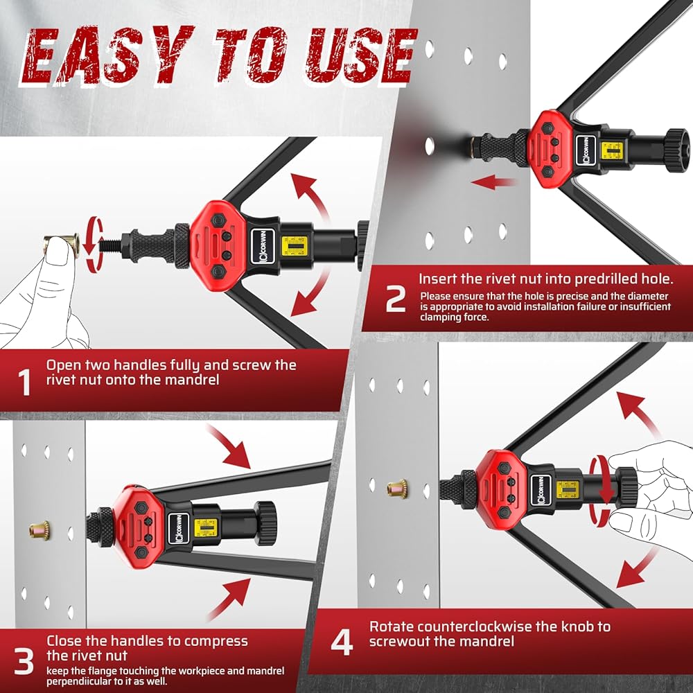 16-inch handles for increased leverage: The 16-inch long handles provide greater leverage, making it easy to install large-sized rivet nuts. Even when installing stainless steel rivet nuts, you won't feel any effort.