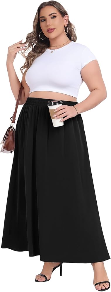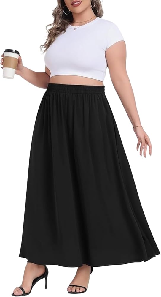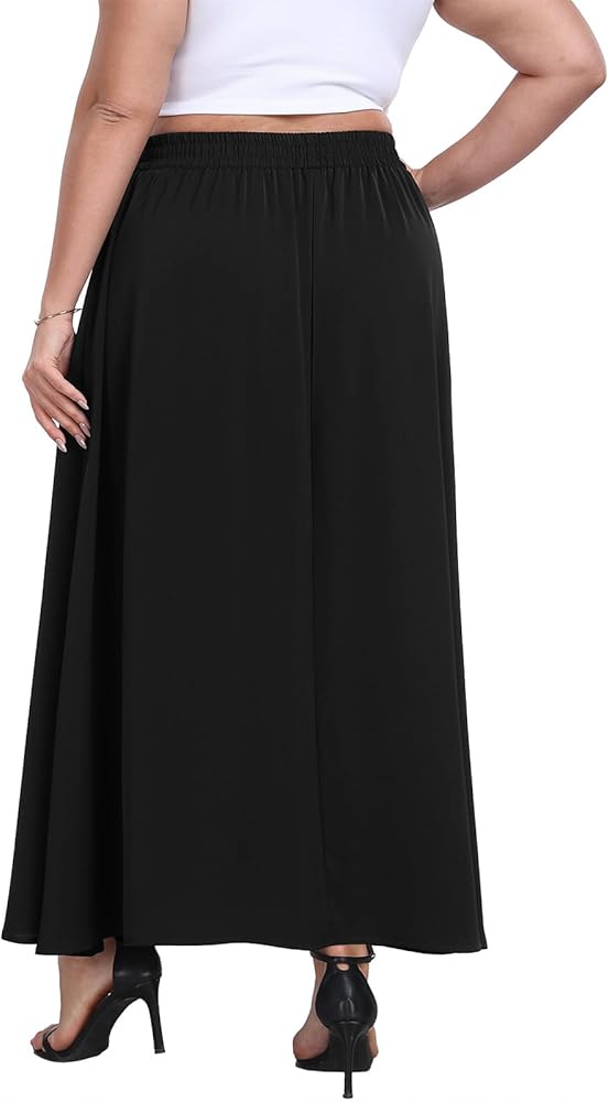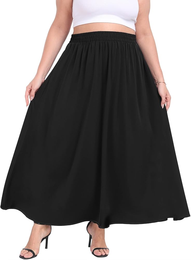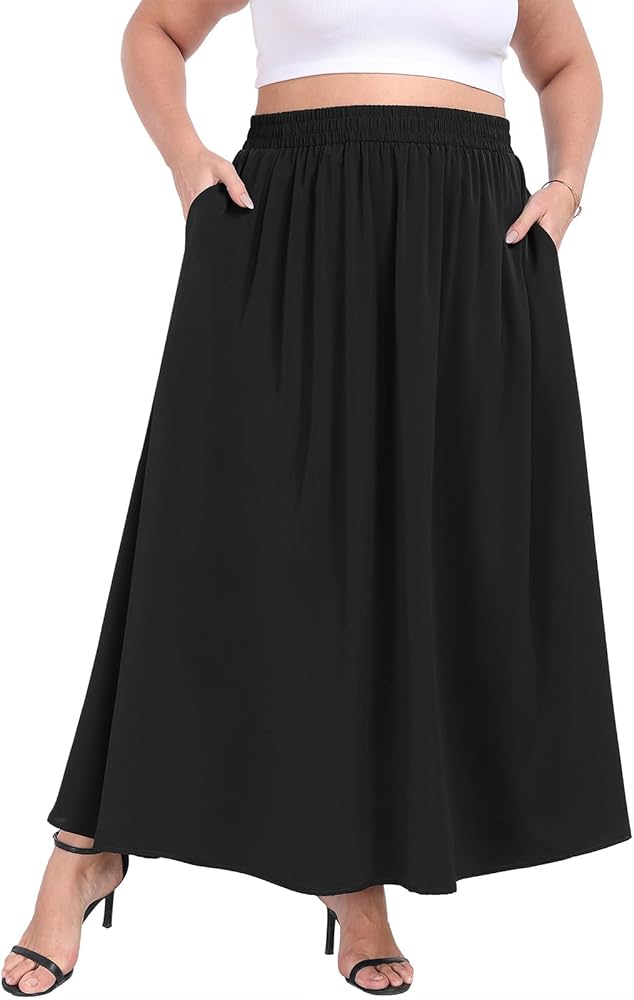 【Cute Design】:Women plus size, hide drawstring, side pockets, flowy swing beach skirts, casual boho A-line, solid&floral print, loose fit maxi long skirt. The elastic pleated high waisted guarantees freedom of movement, making it ideal for various activities. Two handy pockets integrate practicality without sacrificing style, eliminating the need to carry a purse or clutch everywhere you go.