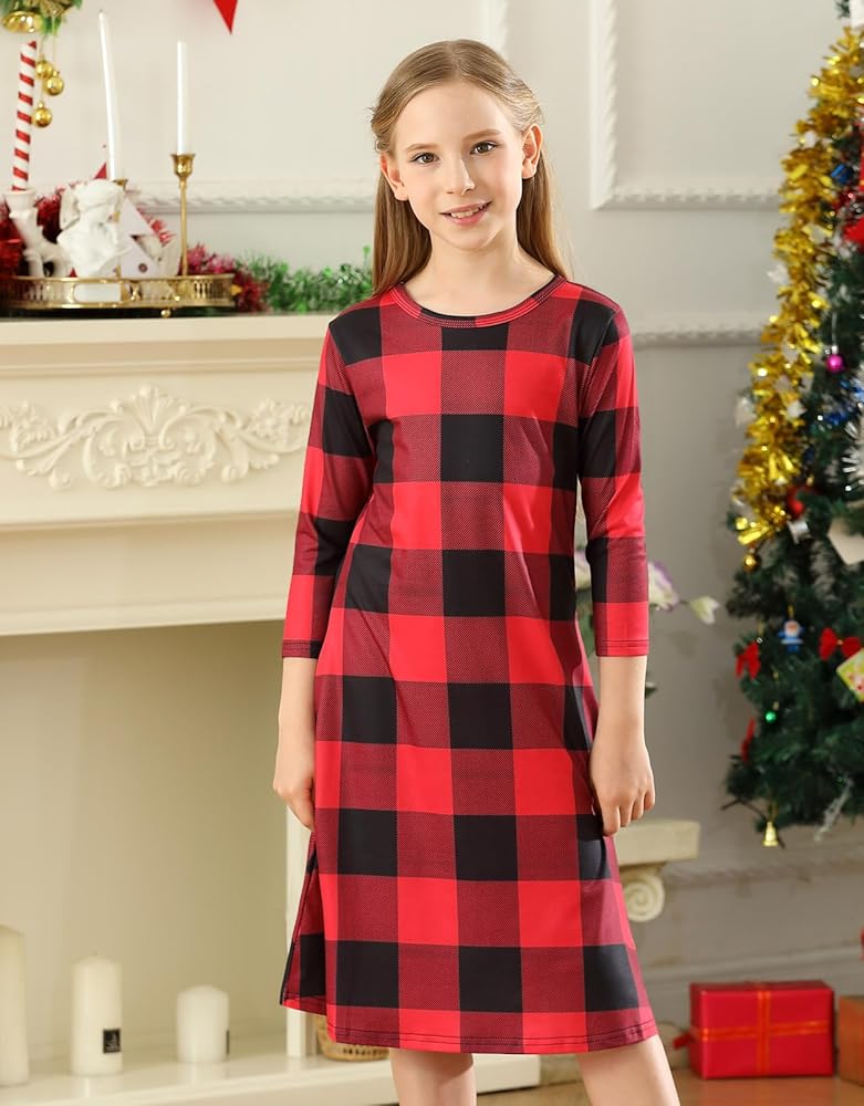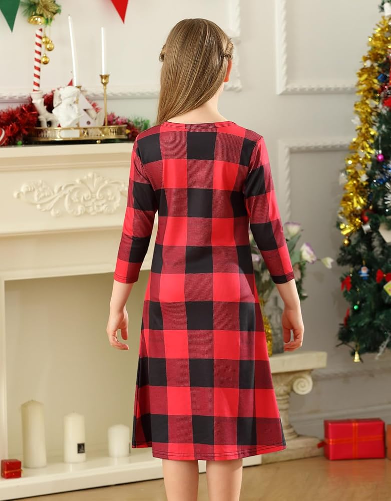 SUITABLE FOR MANY OCCASSIONS: This girl 3/4 sleeve buffalo check tunic dress is suit for daily wear, christmas, party, school, shopping, walk after dinner, park, holiday, etc. Is Perfect For Spring/Fall/ Winter Days To Wear. Your girl will receive many compliments!