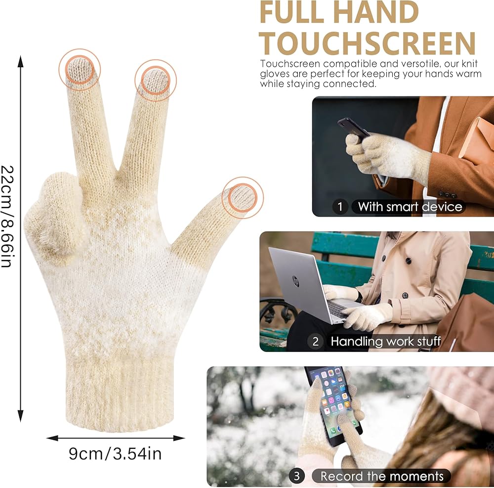 Perfect Fit: Womens gloves with stretchable elastic cuffs, can effectively block the entry of cold air, not too tight and not too loose, both wind and warm. A size that fits the vast majority of women, teens and girls, the unstretched size is: 22x9 cm /8.66x 3.54 inch. Easy to put on and off, and effective at keeping your hand warm, the knitted womens gloves winter are a must-have addition to your winter wardrobe.