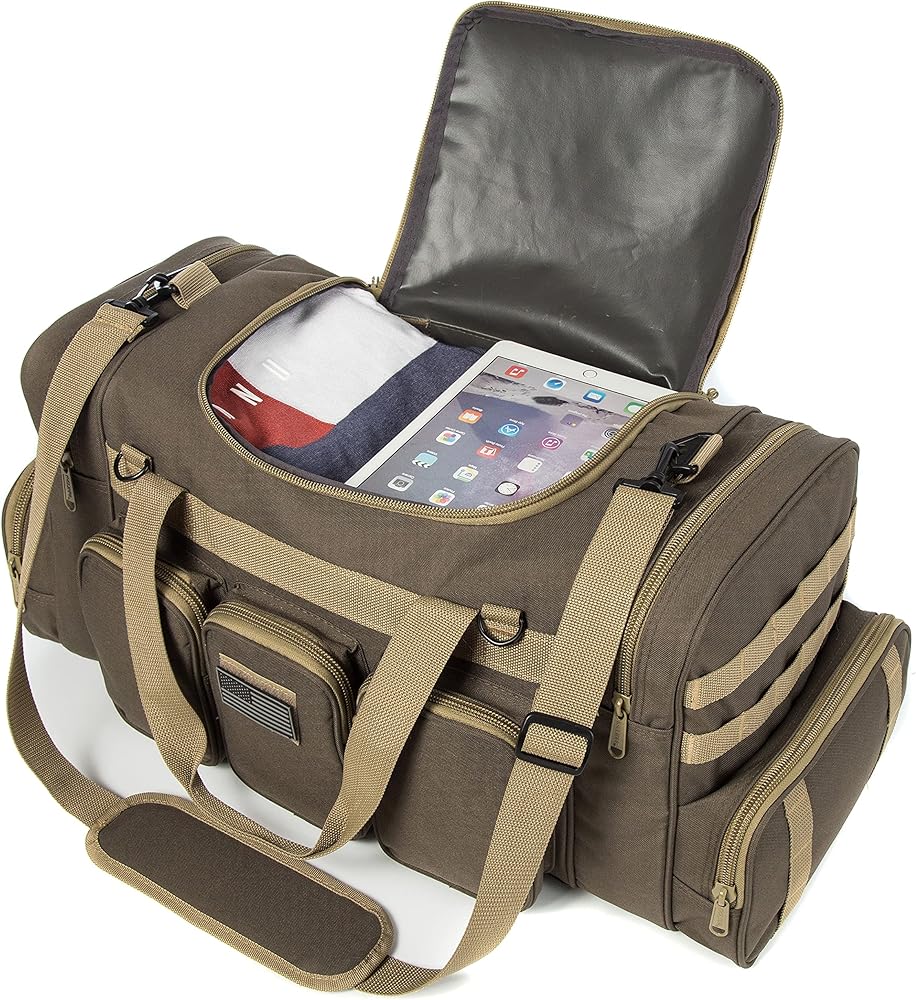 🔫 QUALITY TRAVEL BAG LARGE OPENING: High Quality Travel Bag with Main compartment that is a wide U-shaped opening for maximum opening space without compromise to functionality. Side pockets also have large openings relative to their size.