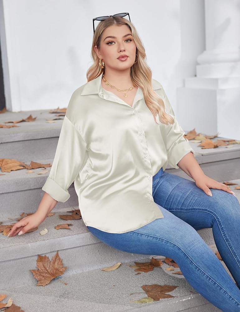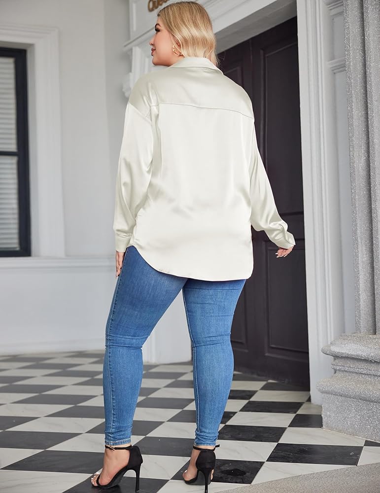 Classic Design: Plus size silk button down shirts, long sleeve satin shirts plus size, curved hem that can also be knotted for a casual look, perfect to show your curves and worn in all seasons.