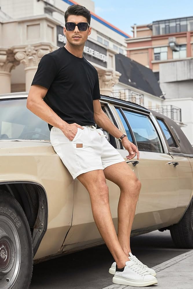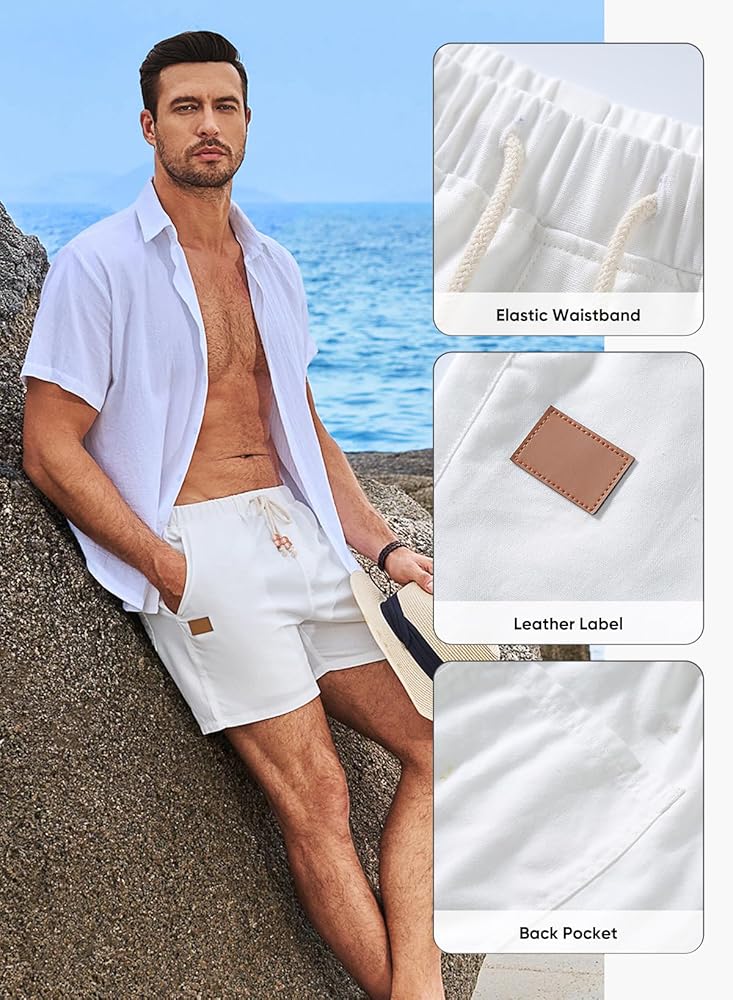 JMIERR Mens Linen Shorts Casual 5"/ 7" Cotton Elastic Waist Drawstring Summer Vacation Beach Shorts with Pockets