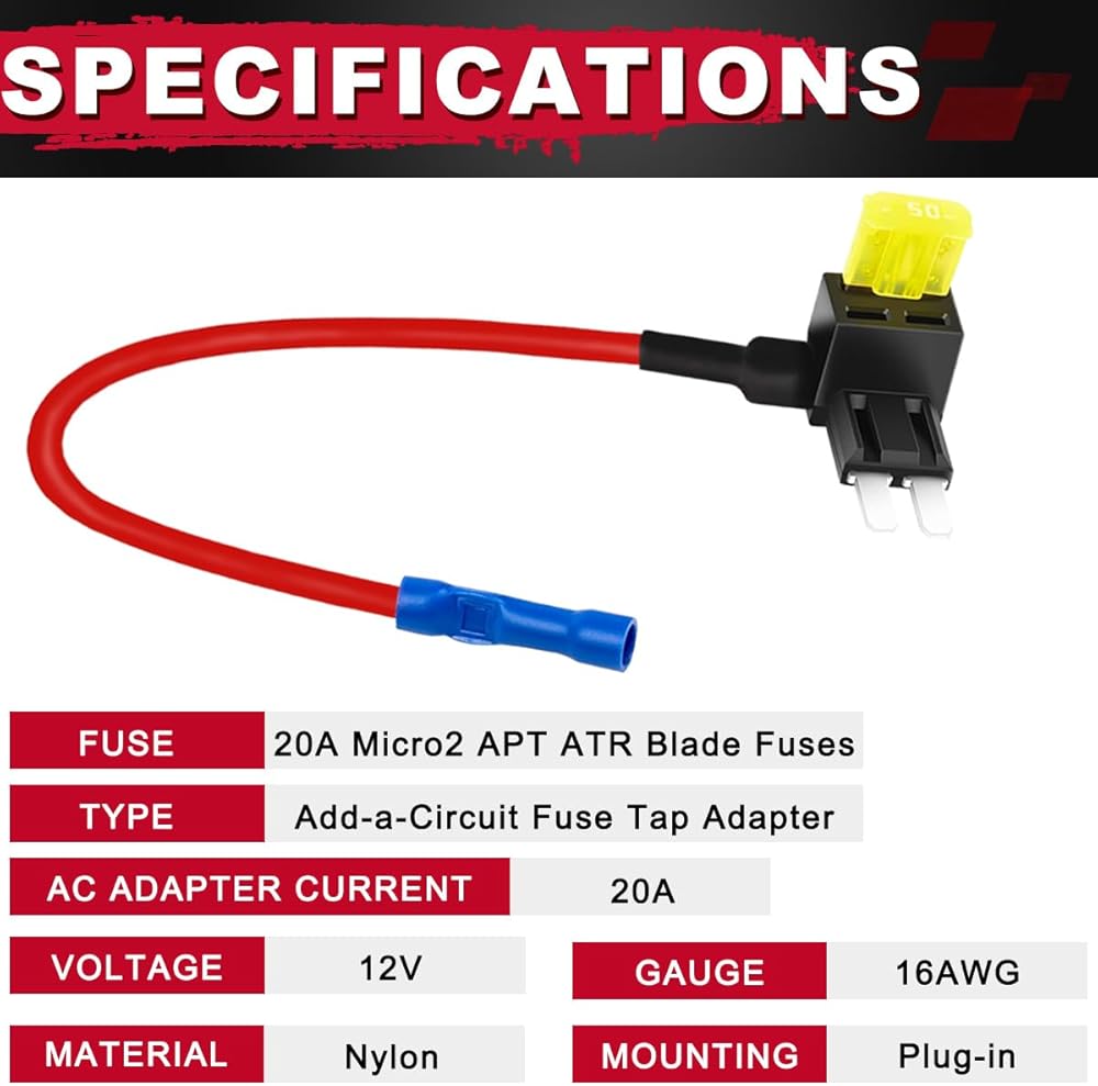 12PCS Micro2 Fuse Taps 12V Car Add-a-Circuit Fuse Tap Adapter Mini 20A Micro II APT ATR Blade Fuse Holder Add On Dual Circuit Automotive Fuse Set Fuse Puller for Car Truck Boat RV