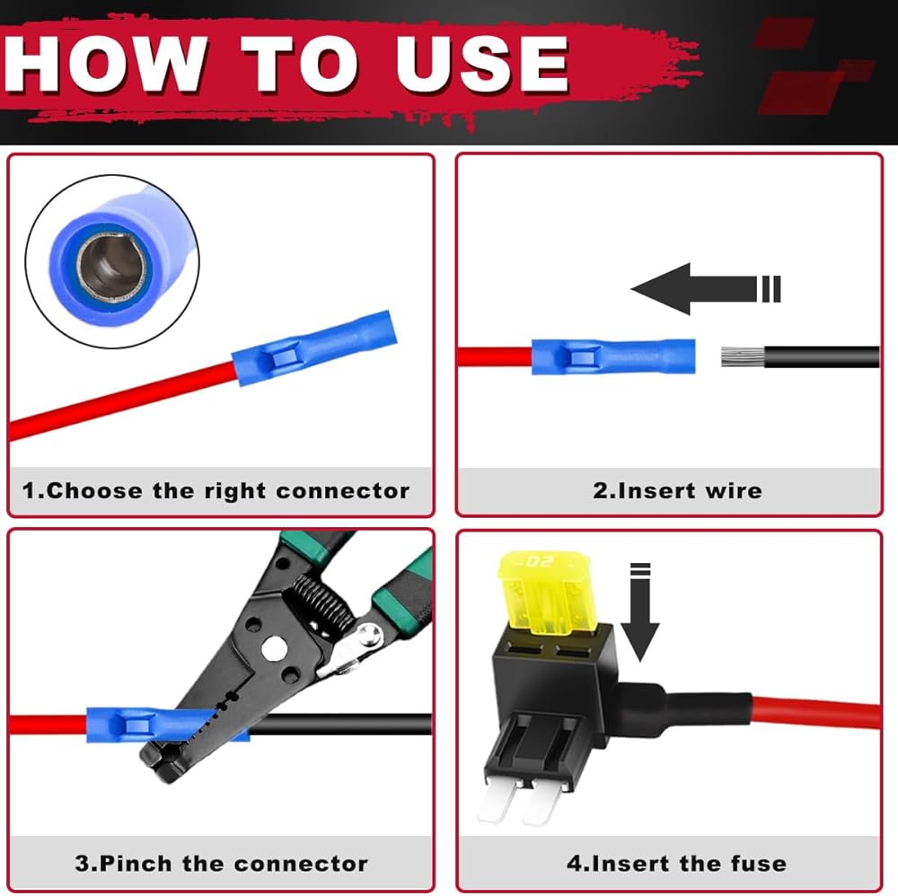 【Easy to Use】Simply insert into the vacant live fuse block slot. Additional circuits can be easily installed without splicing.