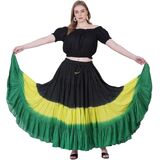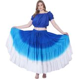 Introducing Wevez Women's 25 Yard Tribal Belly dance solid dip dye 4- tier cotton skirt, the perfect choice for any belly dancer looking for a stylish and comfortable skirt to enhance their performance. Made from high-quality cotton, this skirt is soft, breathable, and lightweight, making it ideal for long performances or practice sessions. The skirt features a vibrant tribal design with a solid dip dye color that is sure to turn heads and make you stand out on the dance floor. The 4-tier construction of the skirt provides ample coverage and allows for easy movement, while the elastic waistband ensures a secure and comfortable fit. Whether you're a beginner or a seasoned belly dancer, this skirt is the perfect addition to your dance wardrobe.