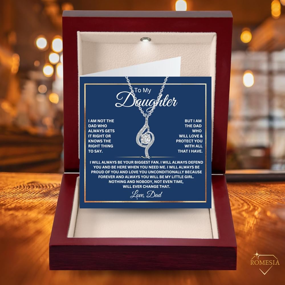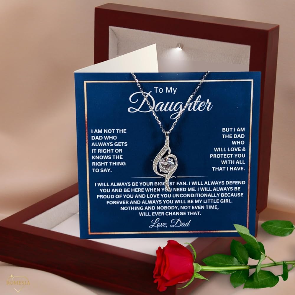 FOLDING GREETING CARD INCLUDED - With a heartfelt message on the front and opens to a large clear space to write in your own words, guaranteed to bring tears of joy and appreciation to her eyes. Perfect gifts for daughter from dad and mom; It's not just a piece of jewelry; it's a daughter gift that strengthens the connection between you and your daughter, making it a treasured daughter jewelry gift.