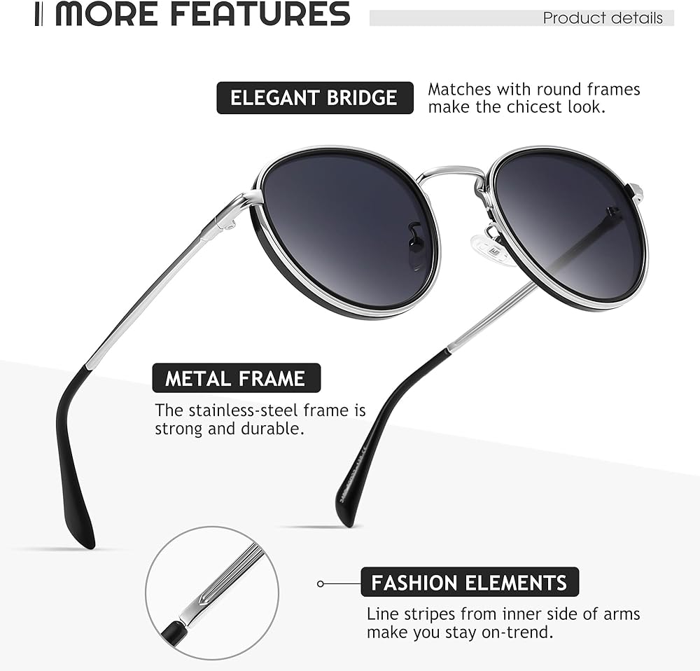 Retro Round Sunglasses: The design combines classic elegance with a modern twist, making them stylish women's accessories that add flair to any outfit or selfie.