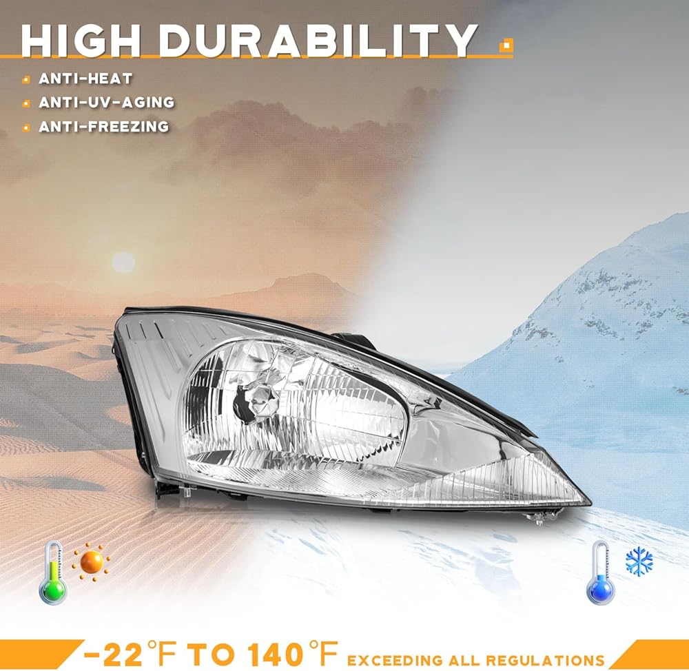 𝐎𝐄𝐌#3S4Z13008CD/3S4Z13008CC : Get a 100% match for your vehicle: This replacement is ideal for 𝟐𝟎𝟎𝟎-𝟐𝟎𝟎𝟒 𝐅𝐨𝐫𝐝 𝐅𝐨𝐜𝐮𝐬 𝐦𝐨𝐝𝐞𝐥𝐬 only (Not compatible on models with factory Xenon headlights) Kindly note, 𝐛𝐮𝐥𝐛𝐬 𝐚𝐫𝐞 𝐍𝐎𝐓 𝐢𝐧𝐜𝐥𝐮𝐝𝐞𝐝. Ultra-brightening chrome bezel: Get premium plating with durable material
