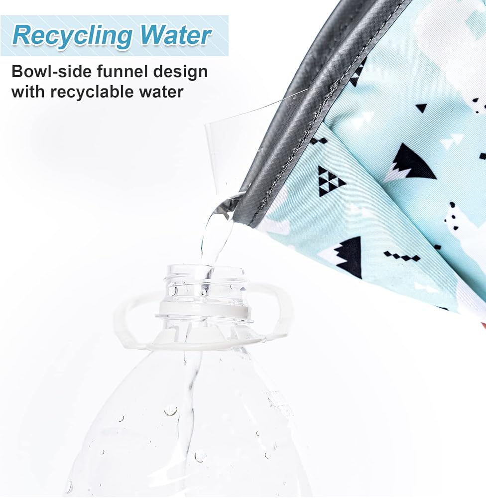 【EASY TO USE & CLEAN】: ①The water bowl has a funnel design around the edge, so your pet's unused water can be poured back into the bottle through the funnel, saving water, especially in outdoor environments where water is scarce. ③After use with a little wipe, a few minutes to quickly dry.