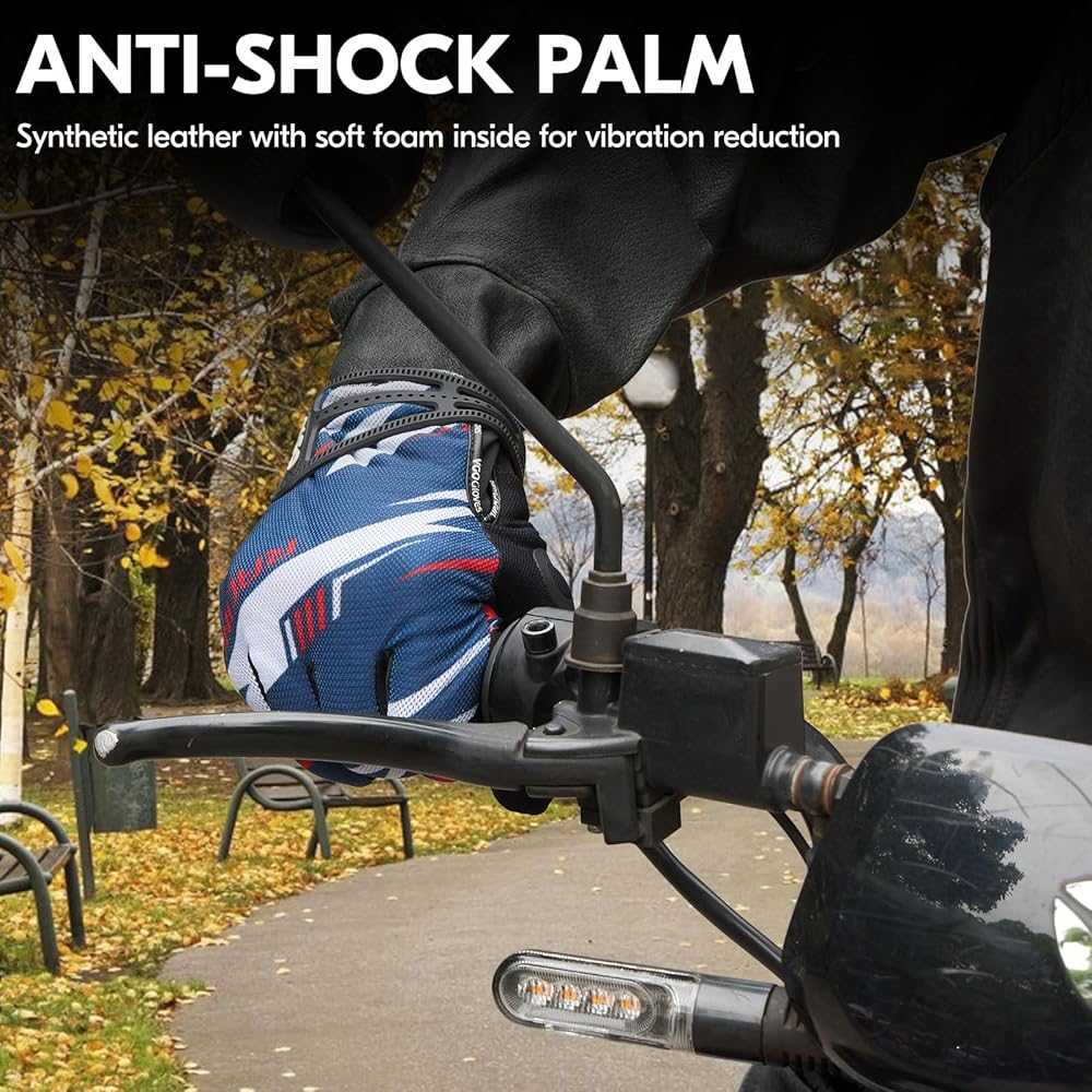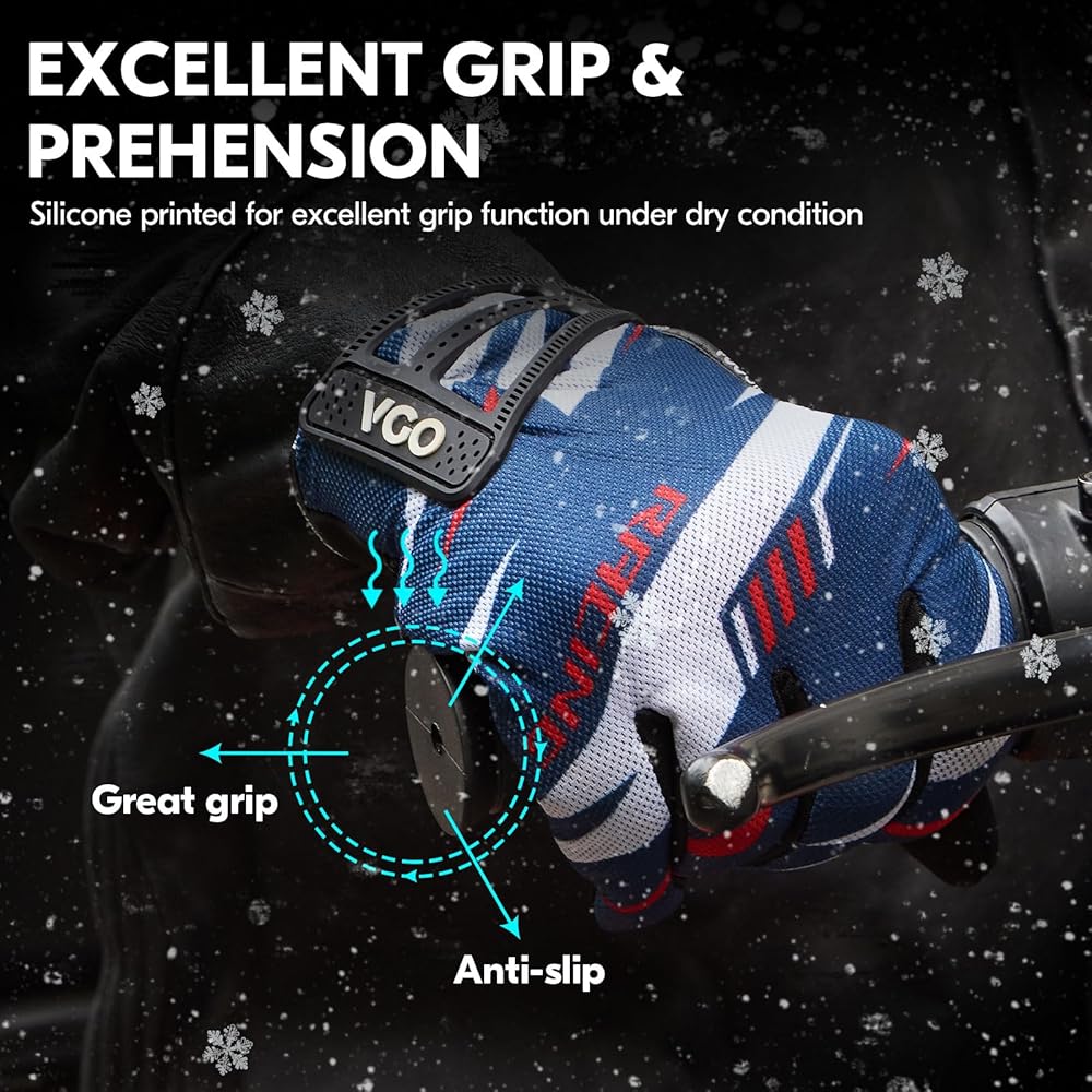 VIBRATION REDUCTION, ABRASION RESISTANCE & GREAT GRIP - Soft elastic fabric palm with silicone print to increase friction and offer great grip, filled with 5MM foam effectively absorbing shock and reducing the impact of intense vibration