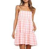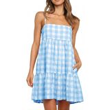 Dress Chic Design: Showcasing a timeless plaid pattern, this sundress boasts a sleeveless design that exudes a laid-back charm. A standout feature includes the convenient side pockets, providing a functional twist to a classic design. Its adjustable spaghetti straps enhancing the overall wearability and comfort of the dress.